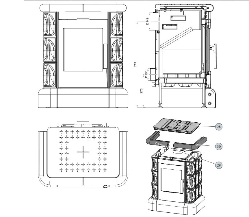 Nedílnou součástí kamen je technická dokumentace k produktu, kterou naleznete v souvisejících souborech.