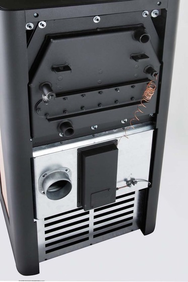 Tato kamna nelze provozovat bez připojení k radiátorům nebo podlahovému topení. Teplovodní výměník slouží k ohřevu vody, která následně cirkuluje v topném systému. Pro zajištění správné funkce a bezpečnosti musí být kamna vždy napojena na topnou soustavu.