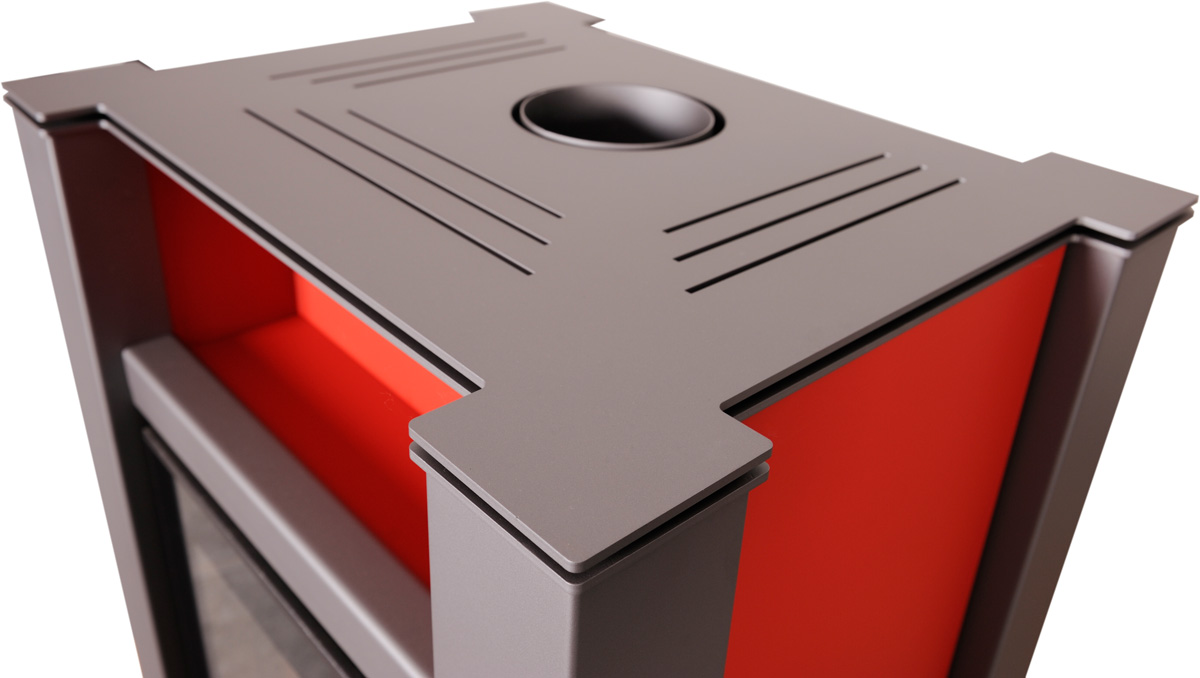 Kamna AQUAFLAM Vario Kalmar s výměníkem se vyrábí v pěti barevných variantách – červené, krémové, šedé, olivové, sametově hnědé a ve dvou výkonech teplovodních výměníků – 5 kW a 7 kW. Máte tak možnost zvolit si kombinaci barvy a výkonu podle vaší potřeby. Materiál na výrobu kamen je kvalitní ocelový plech 3 a 5 mm a je pečlivě vybírán tak, aby dosahoval nejvyšší kvality.