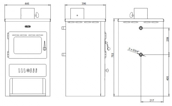 Kamna jsou vybavena také kouřovou klapkou, která vám zaručí možnost regulace intenzity plamene.
