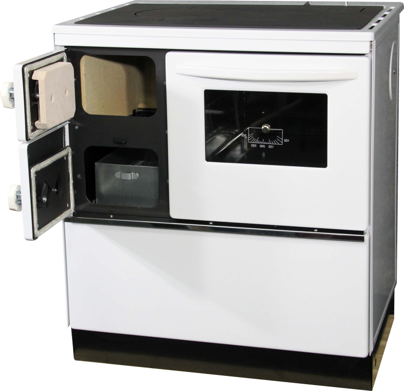 Horní část sporáku s ocelovou plotnu slouží na vaření a ohřívání jídel. V horní přední části sporáku jsou přikládací a popelníková dvířka s ruční regulací spalovacího vzduchu a prosklená, odnímatelná dvířka pečící trouby s teploměrem. Spodní část tvoří smaltovaný kryt, za kterým je umístěný prostorný zásobník paliva na kolečkách. Pod troubou je otvor na čištění spodní části sporáku, který je zakrytý smaltovaným víkem.