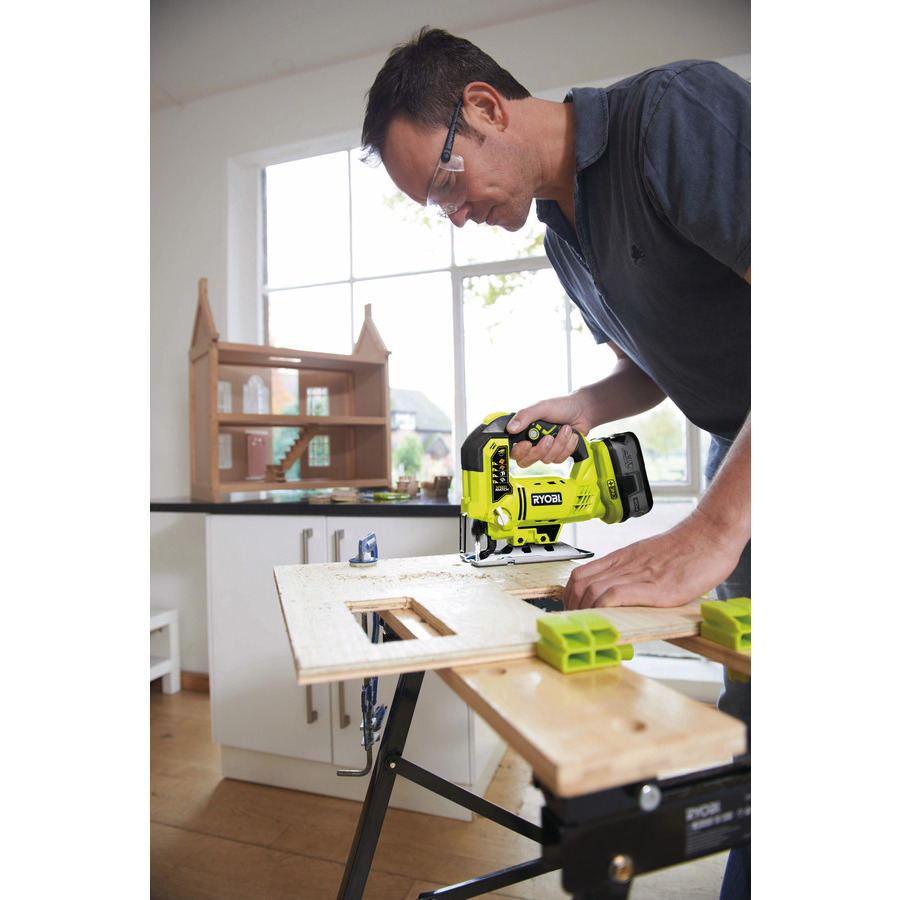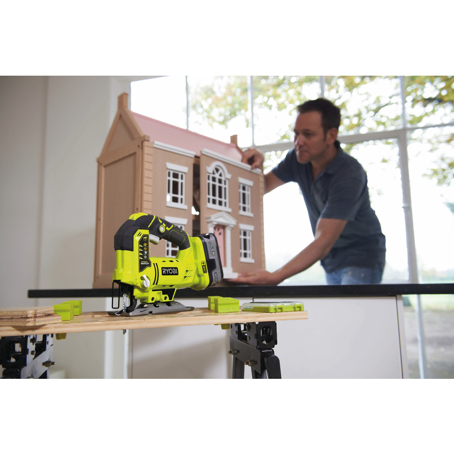Kvalitní aku přímočará pila RYOBI R18JS-0 18V, nabízí perfektní řešení pro všechny řemeslníky a kutily, kteří hledají pomocníka při práci v dílně. Je zejména vhodná pro použití tam, kde není přístup k elektřině, nebo pokud nechcete manipulovat s napájecím kabelem.