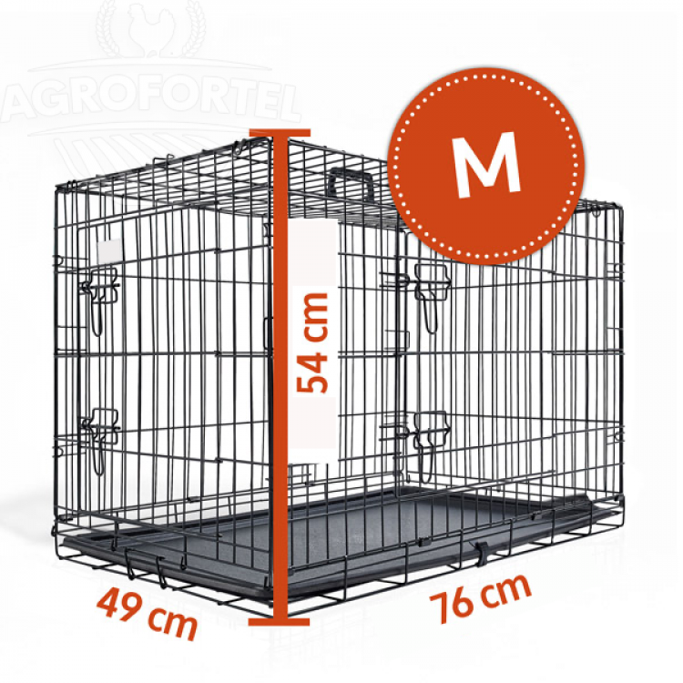Box je vyroben ze silných železných tyčí a je extrémně stabilní díky svému kompaktnímu designu.Díky černému práškovému lakování nemá rez šanci.Robustní přepravní klec se zaoblenými rohy zaujme i svou dlouhou životností.Velké přední dveře a boční otevírání umožňují vašemu snadný přístup. Každá dvířka mají dvojitý zámek, který brání zvířeti v útěku. Váš pes je tak v bezpečí a na jednom místě.Vodotěsná podlahová vana je vyrobena z vysoce kvalitníhoplastu a lze ji vytáhnout pomocí rukojeti. To vám umožní rychle a snadno vyčistit vanu.Lehký box pro psy s nosností6,8 kg se velmi snadno staví a rozkládá díky skládací a kvalitní železné konstrukci. Další zacvakávací uzávěry zabraňují rozložení boxu při přenášení. Pro úsporu místa lze box snadno složit.Skládací box pro psa nabízíme v šesti velikostech. V závislosti na velikosti vašeho zvířete byste měli vybrat box tak, aby váš pes mohl stát a ležet. Vložte dovnitř měkký polštář (není součástí dodávky), aby se váš čtyřnohý přítel cítil pohodlně.Rozměry: 76 x 46 x 53 cm