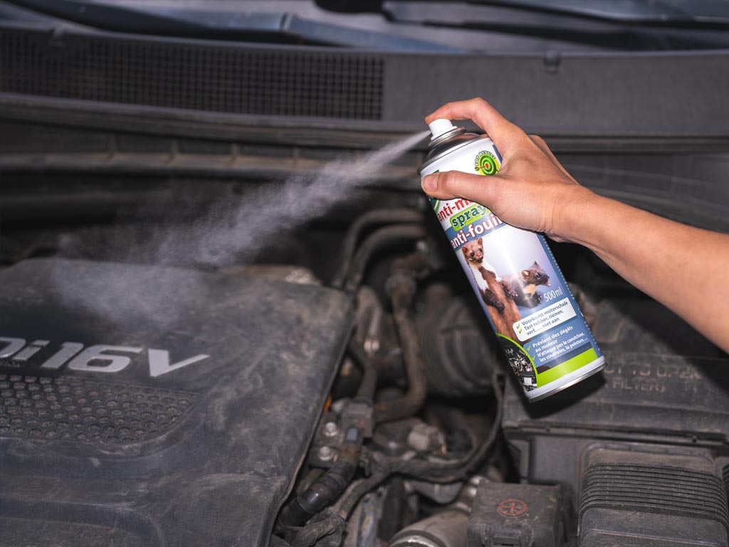 Před použitím protřepejte a aplikujte ze vzdálenosti cca 20–30 cm na čistý a suchý povrch, který chcete chránit. Zaměřte se na místa s častým výskytem kun (kabely, motor, vstupy do půdy apod.).