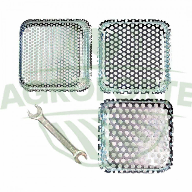Balení obsahuje4 druhy sít podle hrubosti mletí -2 mm,4 mm, 5 mm a 7 mm.