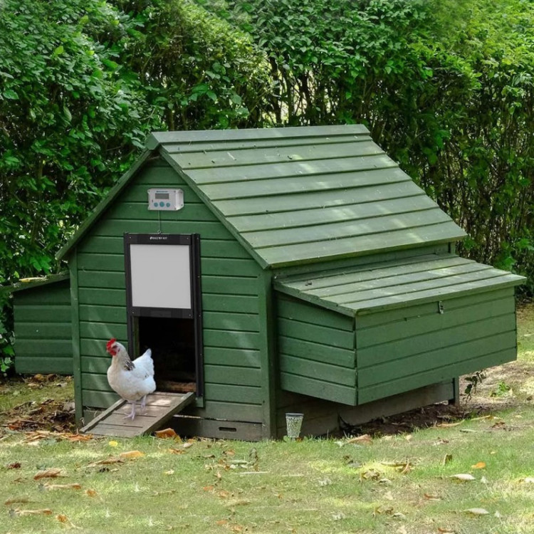 Zařízení pro otevírání/zavírání kurníku je osazeno v odolném plastovém pouzdru. Dvířka jsou zvedána pomocí motorku, který zvládne zvednout dvířka až o hmotnosti 2 kg. Dvířka nejsou součástí balení, je možno je zakoupit buď zvlášť nebo jako SET s jednotkou, případně můžete použít jakákoli stávající vertikálně otevíraná dvířka.