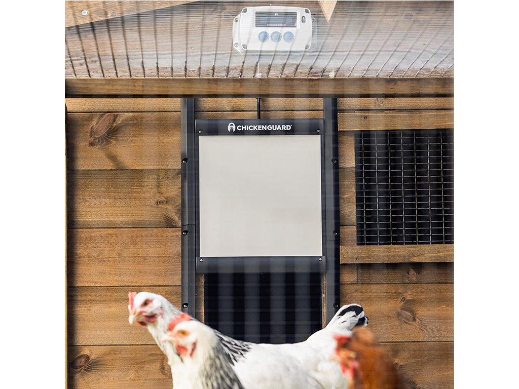 Chicken Guard Pro má velmi výkonný motor, který dokáže zvednout až 2 kg. Součástí zařízení je i bezkontaktní snímač polohy dvířek. Přístroj je vybaven velmi odolným pouzdrem, a tak zajišťuje perfektní ochranu při extrémních povětrnostních podmínkách až do teploty -20 °C. Všechny potřebné informace o nastavení jsou přehledně znázorněny na dvouřádkovém LCD displeji. LCD displej přejde po určité době nečinnosti do "režimu spánku", aby se zvýšila životnost displeje. Zařízení znovu "probudíte" stisknutím tlačítka MENU. Pro nastavování programů slouží extra velká tlačítka, aby bylo možné je ovládat i v rukavicích.