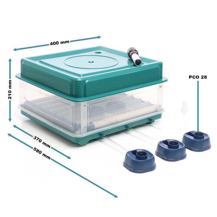 Systém doplňování vody je vskutku unikátní. Můžete použít až 3 libovolné PET lahve (nejsou součástí balení), díky kterým se Vám nestane, že například během dne v práci v líhni dojde voda. Voda bude automaticky přitékat do líhně.