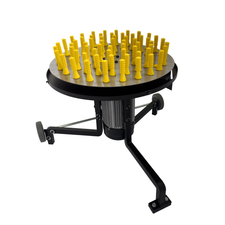 Spodní konstrukce je osazena dvěma pogumovanými kolečky, díky kterým je manipulace se škubačkou velmi jednoduchá i pro jednoho člověka.