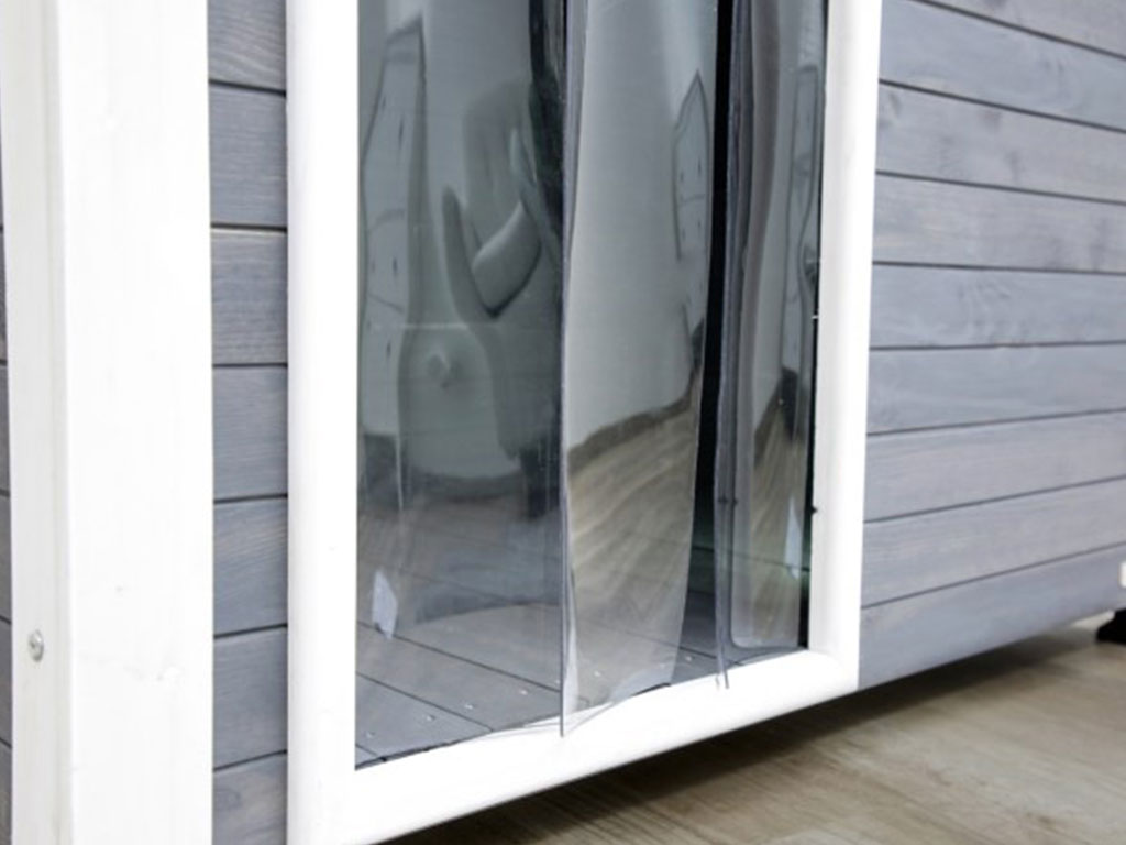 Bouda pro psa je vyrobena z lakovaného dřeva a poskytuje stabilitu a ochranu před nepřízní počasí. Psí bouda má dřevěné stěny ošetřené ochranným lakem, aby byla bouda chráněná a vydržela roky. Ochranný nátěr je vhodné jednou za čas opakovat pro ještě delší životnost. Střecha boudy je pokrytá bitumenovou krytinou, která brání zatečení do boudy a udrží psa v suchu, bezpečně ukrytého před deštěm. Nohy zajišťují dobré odvětrávaní podlahy, zabraňuje navlhnutí dřeva a bouda tak nemusí stát na mokré a studené zemi. Vchod psí boudy obsahuje průhledný lamelový závěs, který ochrání psa před větrem a poskytne mu dobrý výhled.