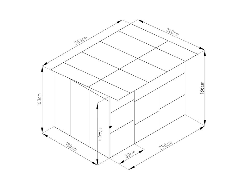 Kotec pro psa G21 o velikosti 260 x 220 cm je prostorný a bytelný, se třemi pevnými stěnami a vyspádovanou střechou. Psí kotec G21 má velké dveře pro snadný přístup i západku na jejich zajištění.