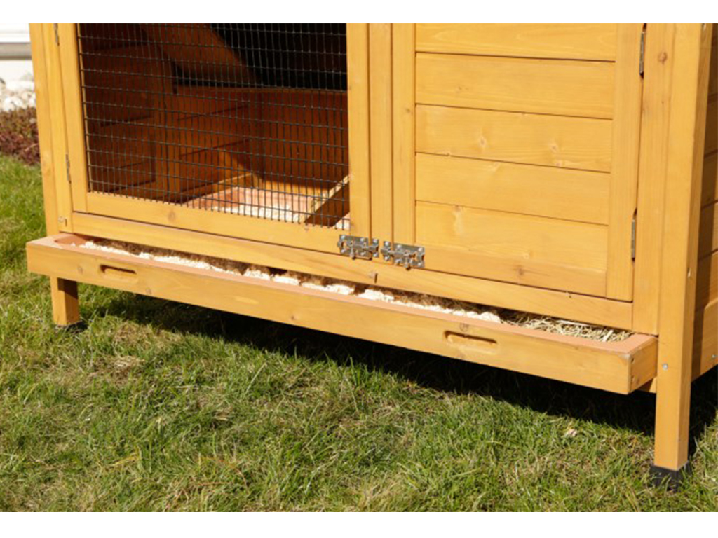 Čištění králíkárny zvládnete během pár minut. Práci velmi usnadní vyjímatelné trusníky s hloubkou 5 cm umístěné na každém patře králíkárny, které stačí vysunout, vyčistit a vrátit zpět.