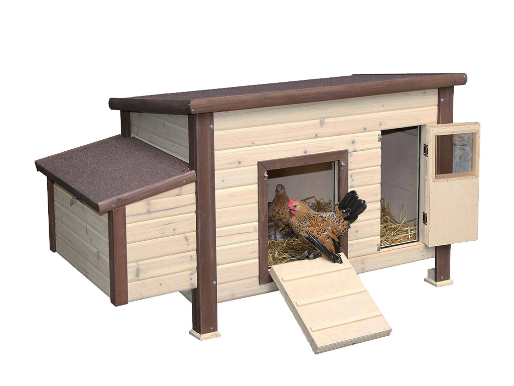 Kurník je vybaven vnějším snáškovým hnízdem se dvěma oddíly a výklopnou stříškou. Díky tomu posbíráte vajíčka pohodlně a rychle. Uvnitř kurníku se nacházejí tři hřady pro odpočinek.
