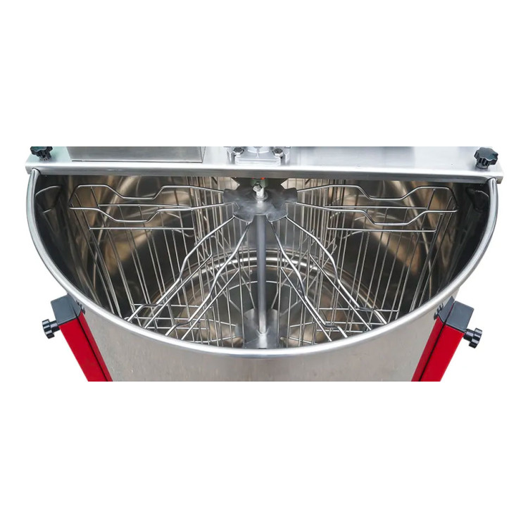 Tento elektrický 6-rámkový radiální medomet je ideální pro všechny větší včelaře. RRadiální medomet vždy umisťuje rámečky paprskovitě a je navržen pro zpracování většího počtu rámečků, obvykle 6 a více. Konstrukce medometu je pevná a velmi robustní, stojí na třech stabilních nohách. Všechny části, které přicházejí do styku s medem, jsou vyrobeny z nerezové oceli a jsou certifikovány pro použití v potravinářství. Koš medometu má rozměry 42 cm x 26 cm. Medomet je dodáván s kovovým kohoutkem, což zajišťuje snadné odčerpání medu.