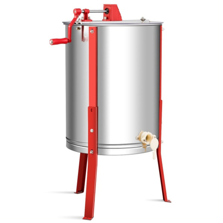 Tento ruční 3-rámový tangenciální medomet je ideální pro všechny větší včelaře. Tangenciální medomety jsou nejuniverzálnější medomety: během procesu odstřeďování jsou rámečky tangenciálně umístěny k nádobě, čímž se med bez problémů vytočí. Konstrukce medometu je pevná a velmi robustní, stojí na troch stabilních nohách. Všechny části, které přicházejí do styku s medem, jsou vyrobeny z nerezové oceli a jsou certifikovány pro použití v potravinářství. Koš medometu má rozměry 42 cm x 26 cm. Tyč spojuje ruční kliku s rotujícím košem. Medomet je dodáván s kovovým kohoutkem, což zajišťuje snadné odsávání medu. Otočný koš umožňuje vložit 3 rámečky. Je možné vložit nejen rámečky pro rozměr Zander, ale i rámečky podle normy DIN. Kryt zařízení je vyroben z průhledného plastu a má 2 odnímatelné části. Kontrola procesu extrakce je možná kdykoliv. Samozřejmě je možné všechny části medometu snadno vyčistit.