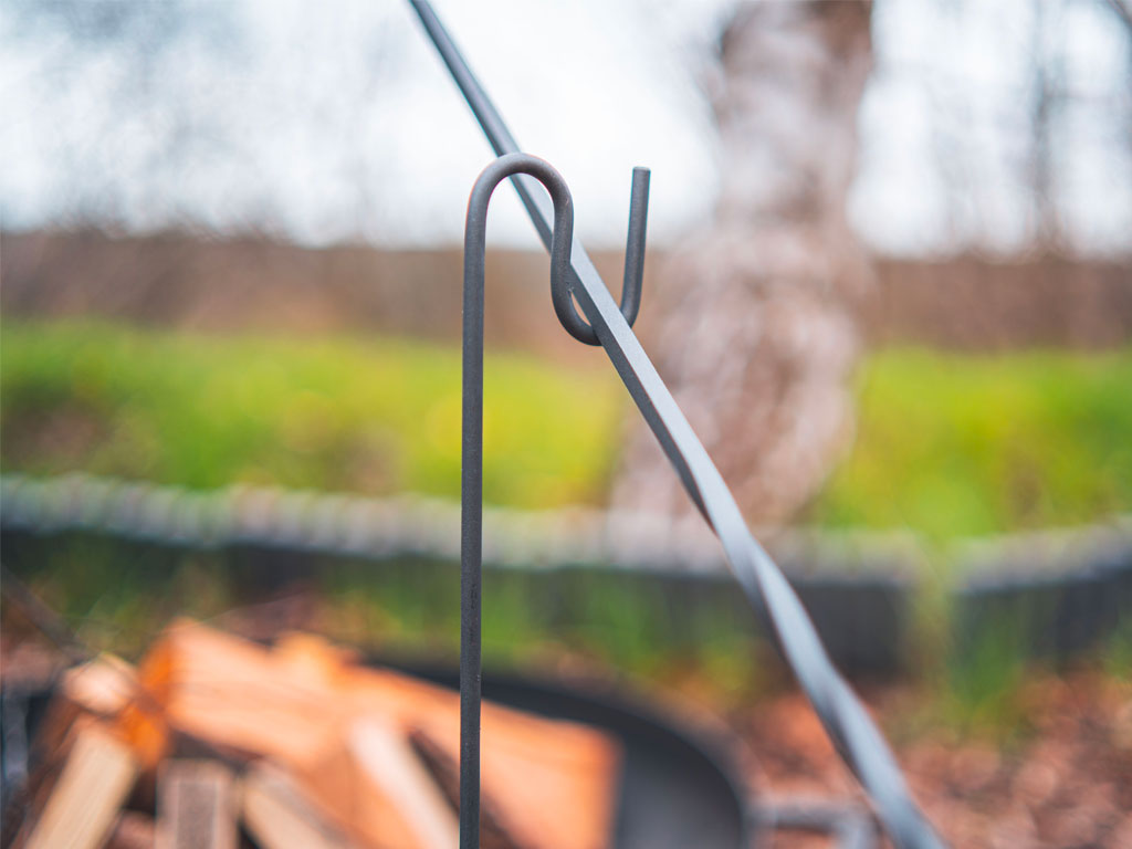 Pro snadnější opékání doporučujeme také ručně kovanou podpěru pro vidlici, kam se vidlice položí do poutka a můžete tak potraviny opékat pozvolna a nejste nuceni stát v přímé blízkosti ohně.