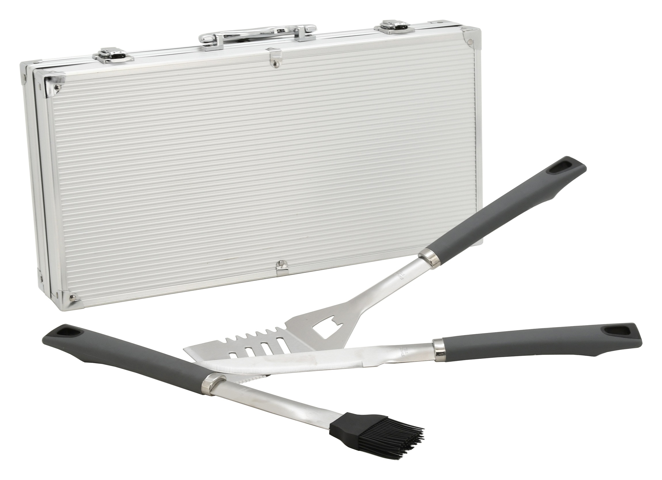 Profesionální sada 11 ks nářadí určené pro grilování a následnou údržbu grilu. Veškeré nářadí je vyrobeno z nerezové oceli, je jednoduchých tvarů, což oceníte zejména při jeho čištění. Rukojeti jsou opatřeny silikonem, díky tomu jsou velice pohodlné do ruky. Veškeré náčiní je možné pověsit na háček.