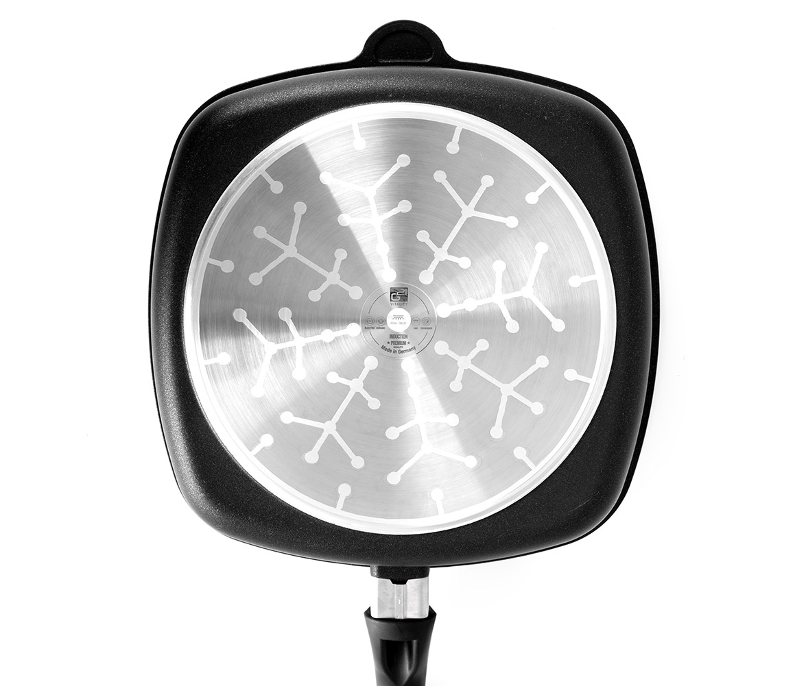 Pokud hledáte nejlepší grilovací pánev, radujte se. Právě jste našli čtvercovou pánev na grilování o rozměrech 28 x 28 cm a výšce 6,5 cm. Pánev je univerzální pro všechny typy ohřevů, teplo vede dokonale rovnoměrně, jídlo se na ní díky speciální nepřilnavé vrstvě LOTAN® nepřipaluje a smažit či grilovat můžete bez použití oleje. Pánev G21 BBQ pro grilování a přípravu dokonalých steaků má speciální mřížkované dno a je odolná teplotám až do 240 °C, takže ji můžete bez obav vložit i do trouby. Silné dno a nepřilnavá vrstva LOTAN®. Pánve vyrábíme v Německu pomocí ručního lití a na vysoké kvalitě je to znát.