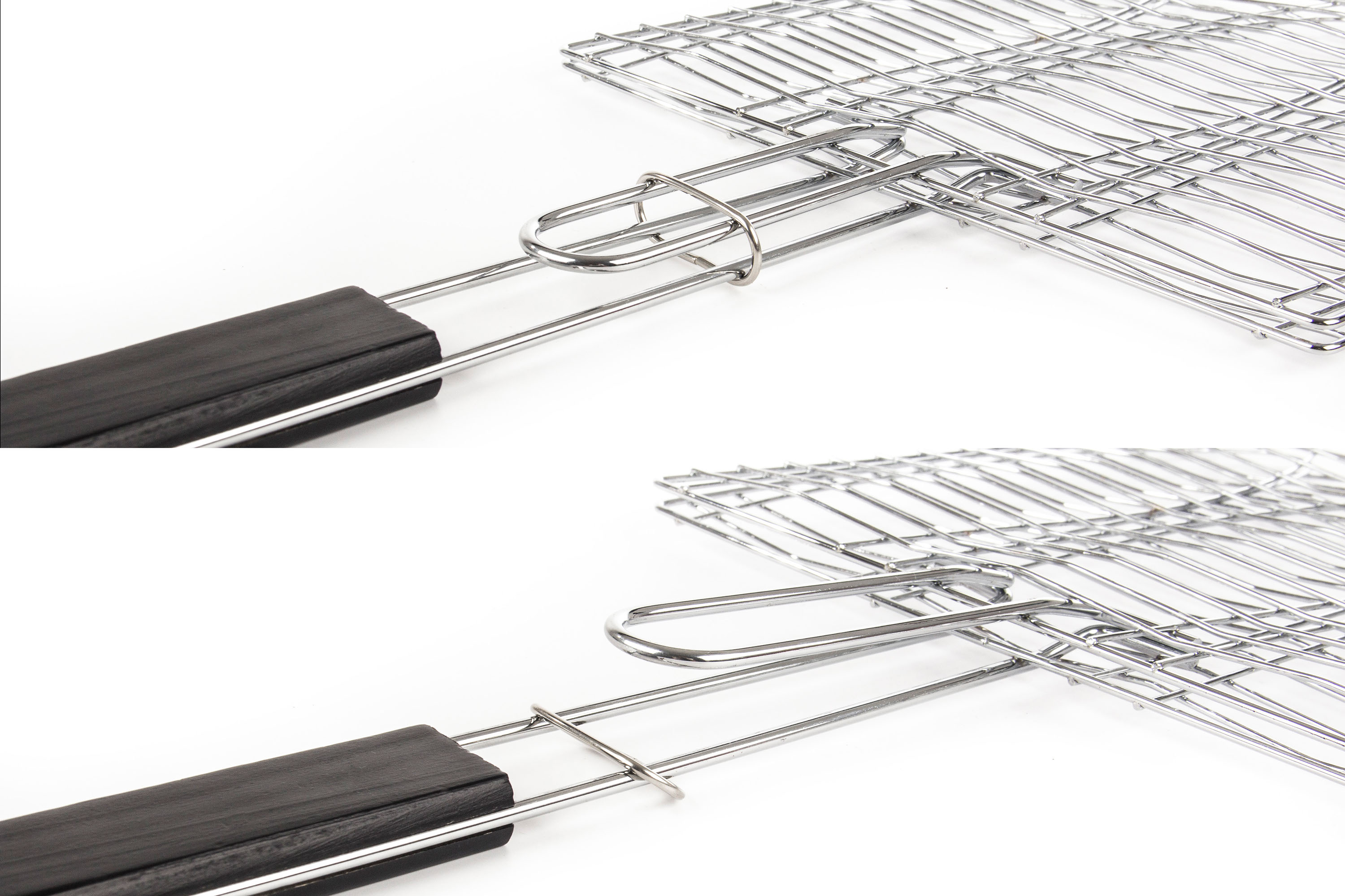 Skvělou grilovací pomůckou je skládací grilovací rošt, v němž snadno ugrilujete až tři ryby. Rošt na grilování ryb jsme vyrobili z nerezu s pojistkou proti náhodnému otevření a izolovanou rukojetí, která vás ochrání před popálením.