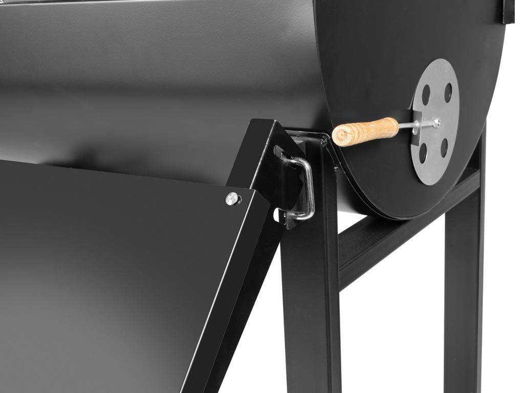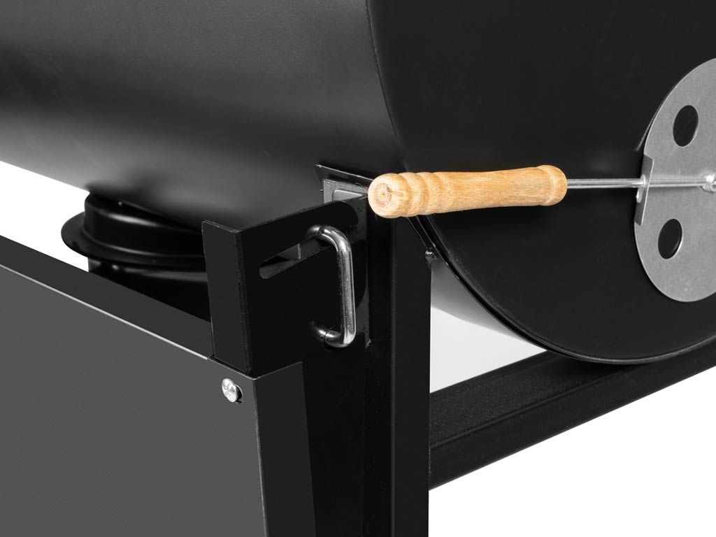 Vestavěný teploměr ve víku pro zjištění optimální teploty grilování, rozměrná grilovací plocha a praktická odkládací police v přední části jsou hlavní přednosti tohoto grilu. Regulace cirkulace vzduchu uvnitř grilu, díky které lze regulovat grilování při zavřeném víku. Ve spodní části je umístěn vyjímatelný popelník, který umožňuje nastavení tahu celého grilu. Gril je pro snadné přemísťování opatřen dvěma kolečky.