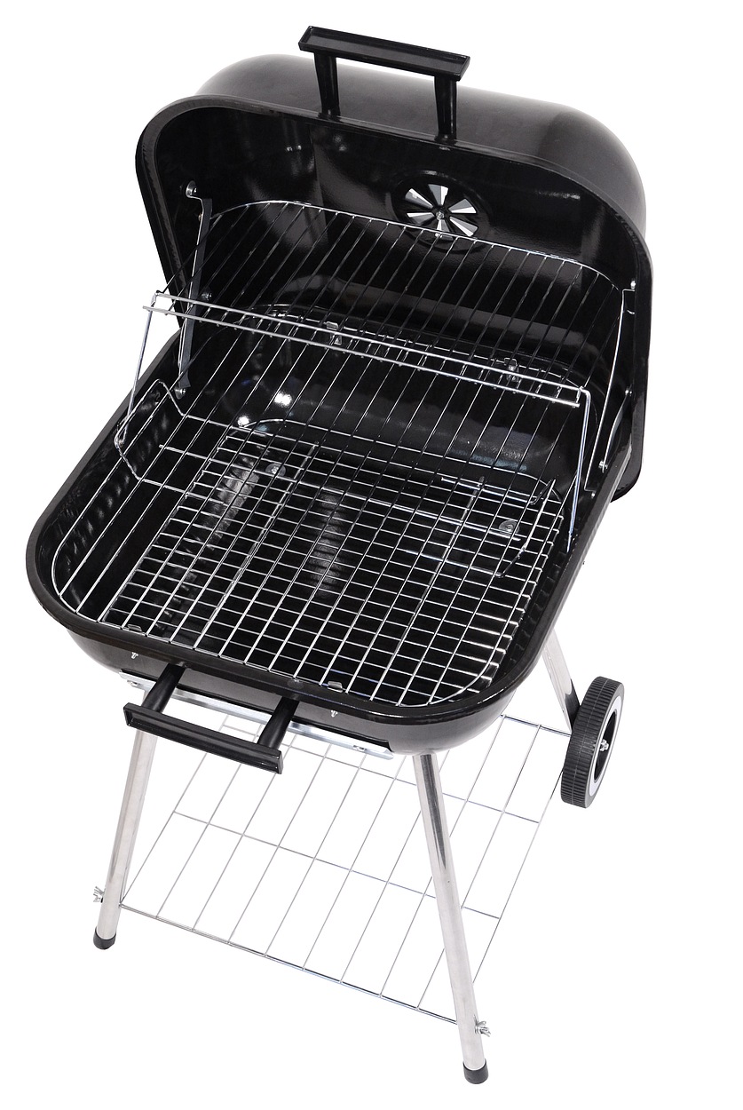 Gril je vybaven regulovatelnou ventilací a miskou na popel, či skapávající olej.