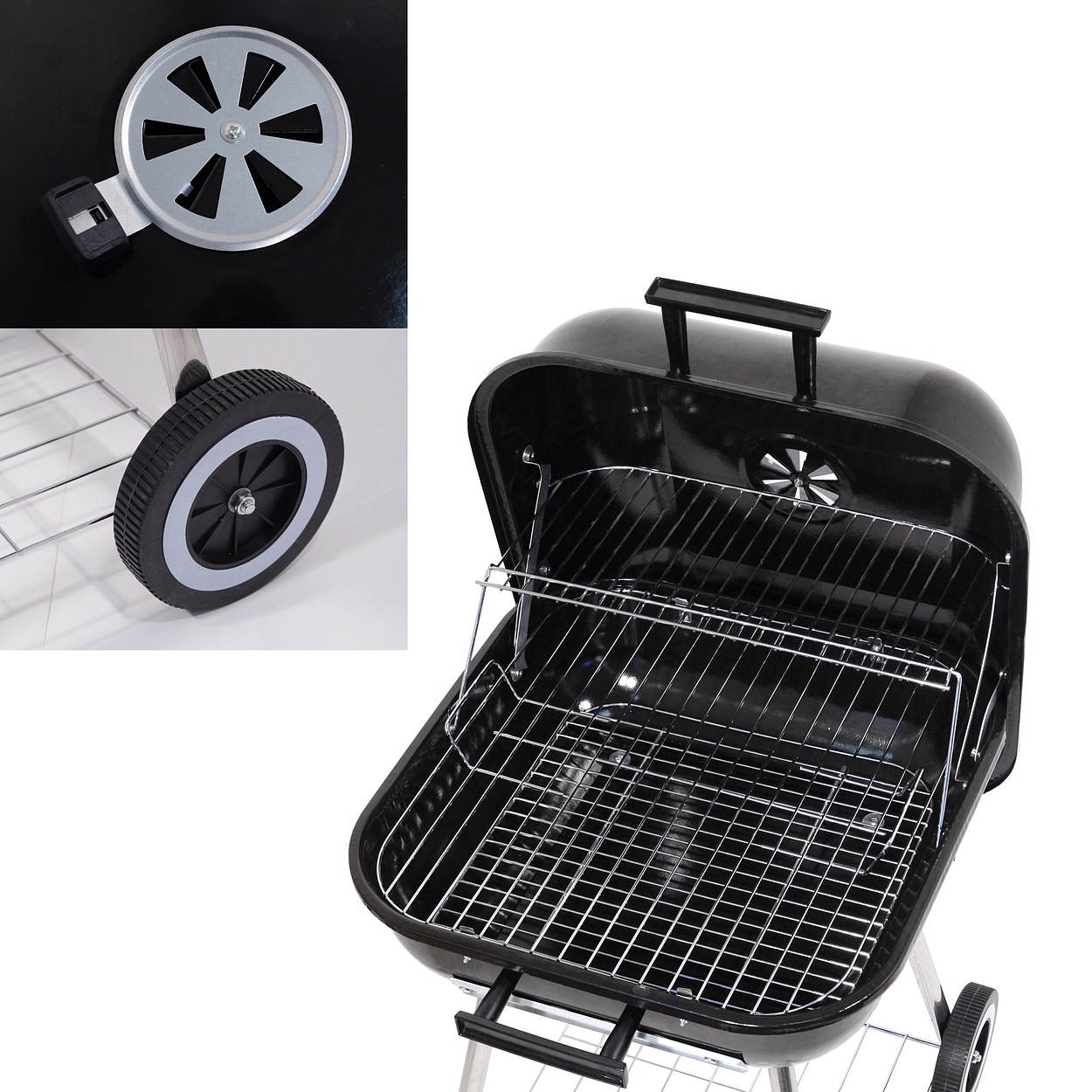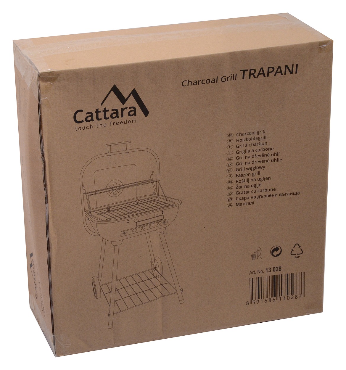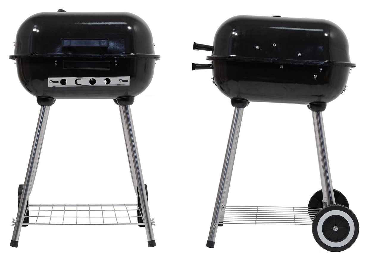 Konstrukce je vyrobena z kvalitního ocelového plechu se smaltovanou povrchovou úpravou. Madla jsou z odolného plastu a mají dostatečný prostor pro úchop. Mobilitu zajištují tři kovové nohy, doplněné o zpevňující rám ve spodní časti. Navíc je gril vybaven kolečky z plastu, která zaručují dostatečnou pohyblivost.