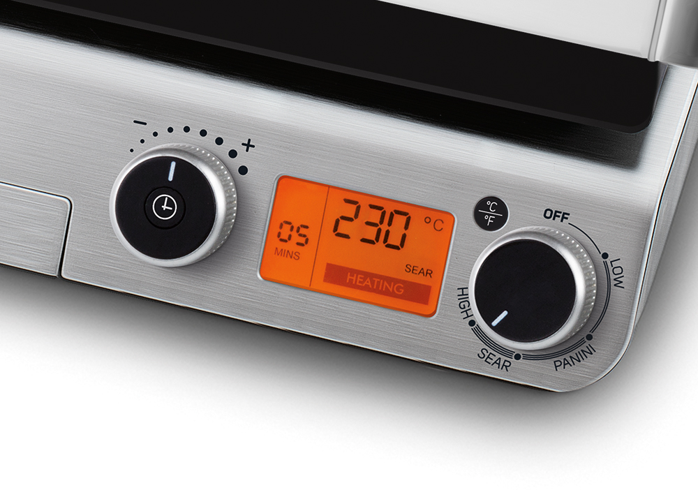 Gril SENCOR SBG 6650BK má digitální ovládání s displejem pro pohodlnější a preciznější grilování. Nepřilnavé grilovací desky s hladkým a vroubkovaným povrchem vám zaručí pohodlnou práci. Možnost grilování bez nutnosti přidávání oleje. Paralelogramový mechanismus zaručuje rovnoměrné rozložení tlaku. Díky nepřilnavým grilovacím deskám 3rd Generation s integrovanou topnou spirálou bude vaše jídlo lahodně propečené bez zbytečného připalování. Gril umožňuje zdravé grilování bez nutnosti přidávání oleje. Paralelogramový mechanismus zaručuje rovnoměrné rozložení tlaku a automatická regulace teploty s indikačním okénkem vám usnadní grilování. S praktickou vyjímatelnou odkapávací miskou na olej je čištění grilu snadné, buď pouze pomocí papírových utěrek, nebo je možné grilovací desky umýt v myčce na nádobí. Tepelně izolovaná rukojeť je vhodná také pro přitlačení sendvičů. Zajištění v uzavřené poloze umožňuje snadné přenášení. Možnost uložení ve svislé poloze.