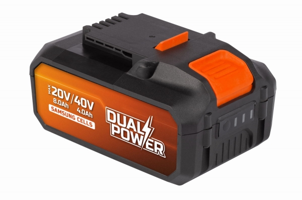 Zcela nový způsob dodávání energie do akumulátorového nářadí. DUAL POWER je novou generací platformy umožňující užití dvou typů baterií. Skládá se z 20V a 40V baterie, které se kombinují s řadou akumulátorového nářadí. Koncept je jednoduchý, ale silný. 20V akumulátor se hodí pro 20V DUAL stroje, akumulátor 40V je určen pro 40V DUAL stroje. Můžete ale také připojit 40V baterii na 20V DUAL stroje. Výrazně tím prodloužíte dobu provozu strojů DUAL POWER. Obě baterie LITHIUM-ION lze nabíjet stejnou nabíječkou 20/40V. Hned na počátku představuje DUAL POWER širokou nabídku jak AKU nářadí, tak AKU zahradní techniky, které jsou určeny pro platformu pracující s oběma typy baterií.