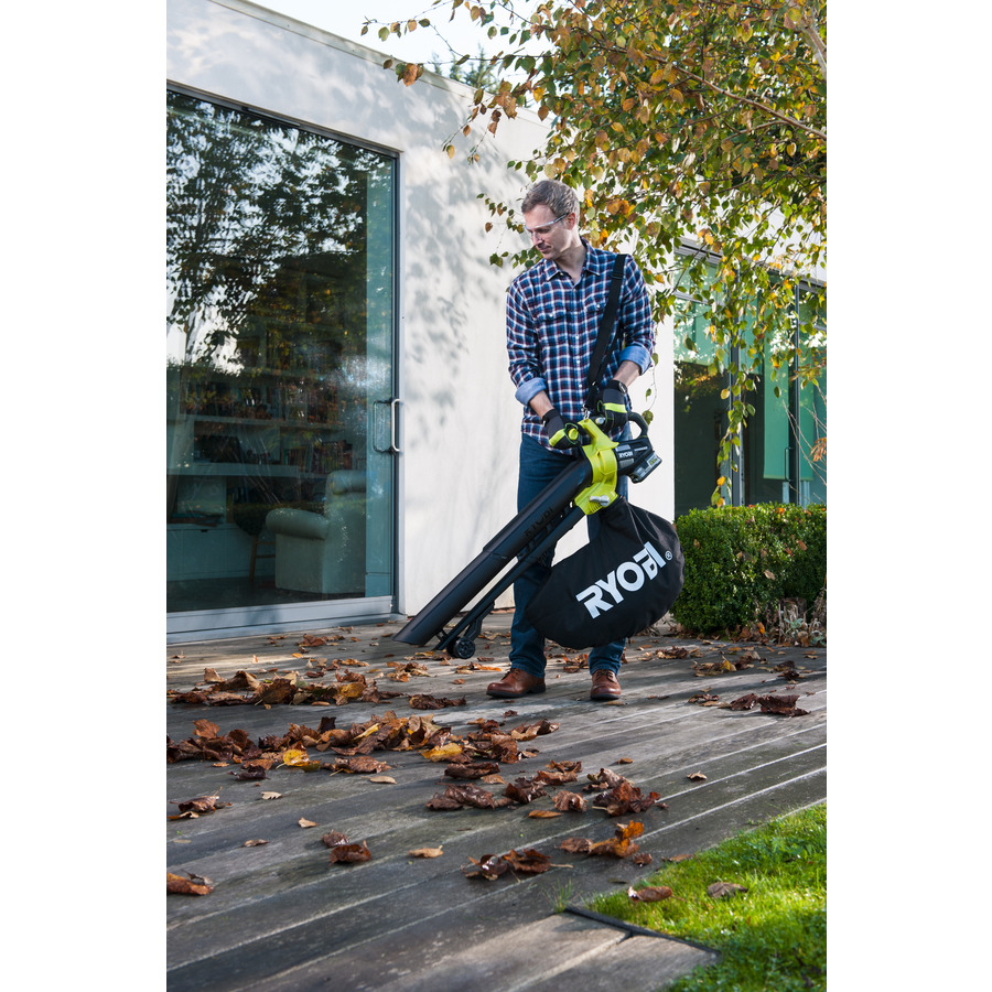 Výkonný akumulátorový foukač/vysavač listí RYOBI OBV18, 18 V je nedocenitelným pomocníkem pro podzimní úklidy na zahradě a v okolí domu. Foukač dokáže listí vysávat, foukat i mulčovat. Listí jednoduše nafoukáte na jednu hromadu, následně ho vysajete, při čemž dojde k rozdrcení a mnohonásobnému zmenšení objemu listí. Nadrcenou směs poté využijete jako výborný základ do kompostu. Je zejména vhodný pro použití tam, kde není přístup k elektřině, nebo pokud nechcete manipulovat s napájecím kabelem.