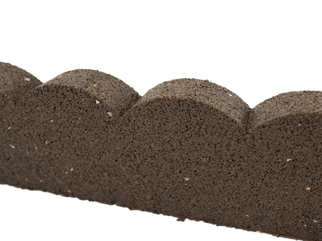 Scalloped je řada ekologických zahradních lemů, která je vyrobena z recyklované pryže, z udržitelného zdroje recyklovaných pneumatik osobních a nákladních automobilů, které se svážejí ze skládky. Gumová drť se sbírá z použitých pneumatik a přeměňuje se na užitečné produkty pro vaši zahradu. Díky pryži jsou lemy pružné, odolné v každém počasí včetně extrémního horka nebo extrémního chladu. Neztrácí ani nemění barvu v průběhu let.