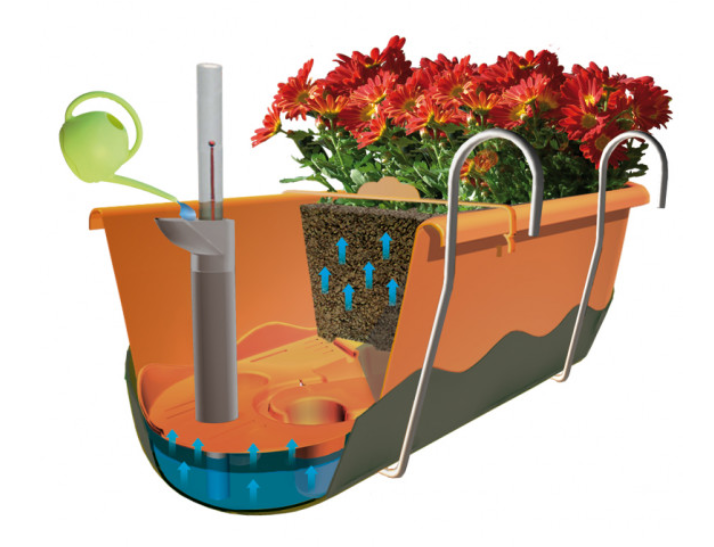 Oblíbený truhlík, který nabízí řadu barevných variací. Ideálně se kombinuje se závěsným květináčem Mareta. Truhlík obsahuje knoty, nalévací otvor, hladinoměr pro měření hladiny vody a sponu.