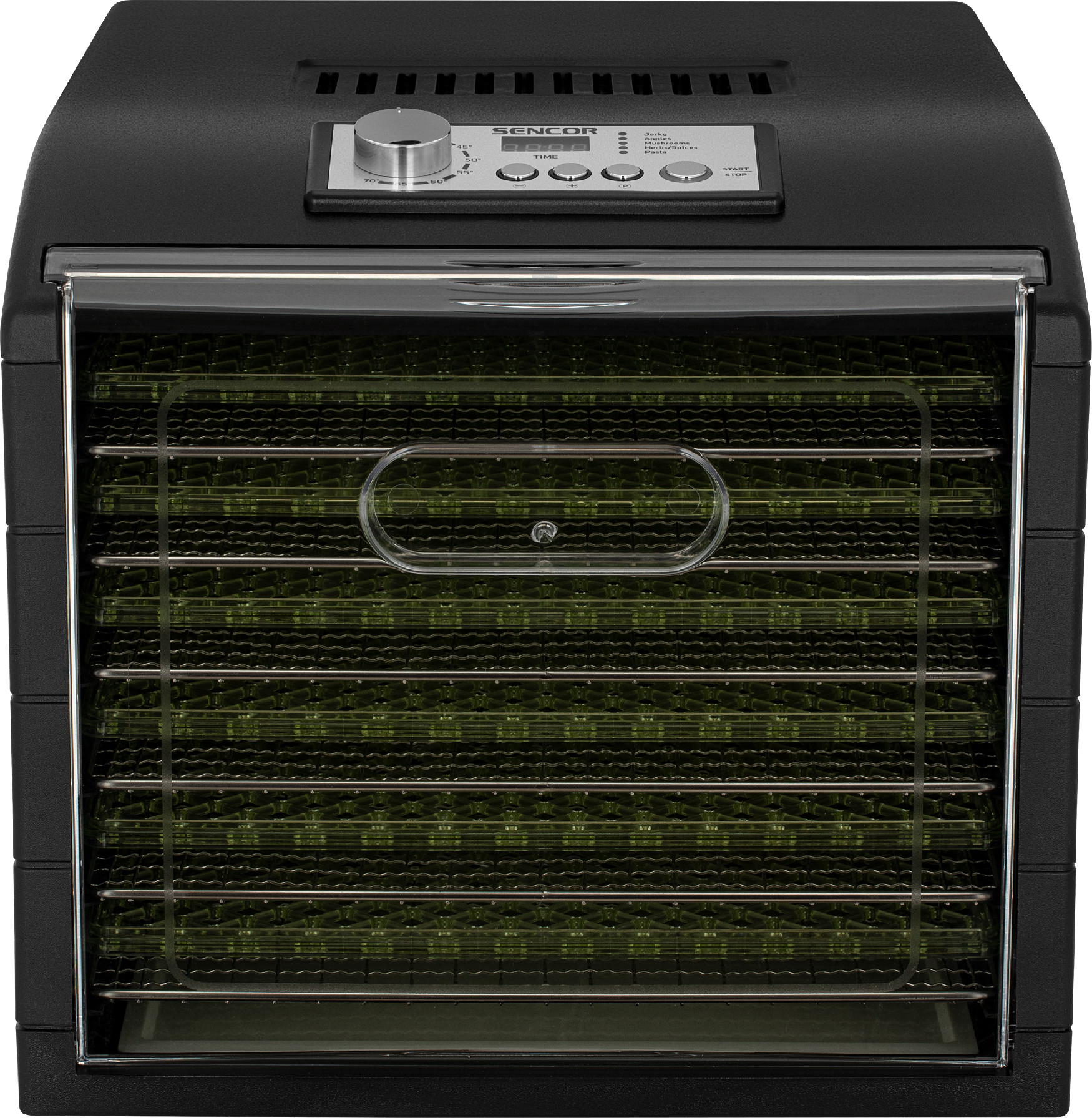 Sušička potravin SENCOR SFD 6601BK s příkonem 500 W, 12 tepelně odolnými podnosy a sušící plochou 1,18 m2 (o 65 % větší než běžná sušička s průměrem 32 cm). Usušte si kvalitní potraviny bez zbytečně přidaných konzervantů a cukrů. Stačí jen nakrájet vybrané suroviny na plátky a naskládat je vedle sebe. Po nastavení času se automaticky spustí odpočítávání.Sušička ovoce 5 automatických programů pro – Sušené maso – Jablka – Houby – Bylinky / Koření – Těstoviny. Jakmile je dosušeno, sušička se sama automaticky vypne. Díky LED diodám a časovači budete mít celý proces pod dohledem.Regulace teploty 35-70 °C umožňuje zachovat maximální množství přírodních látek. Sušička má dvanáct plátů, na jeden plát se vejde pět set gramů. Design mřížky sušících podnosů zabraňuje vzniku plísní a optimalizuje proudění vzduchu.