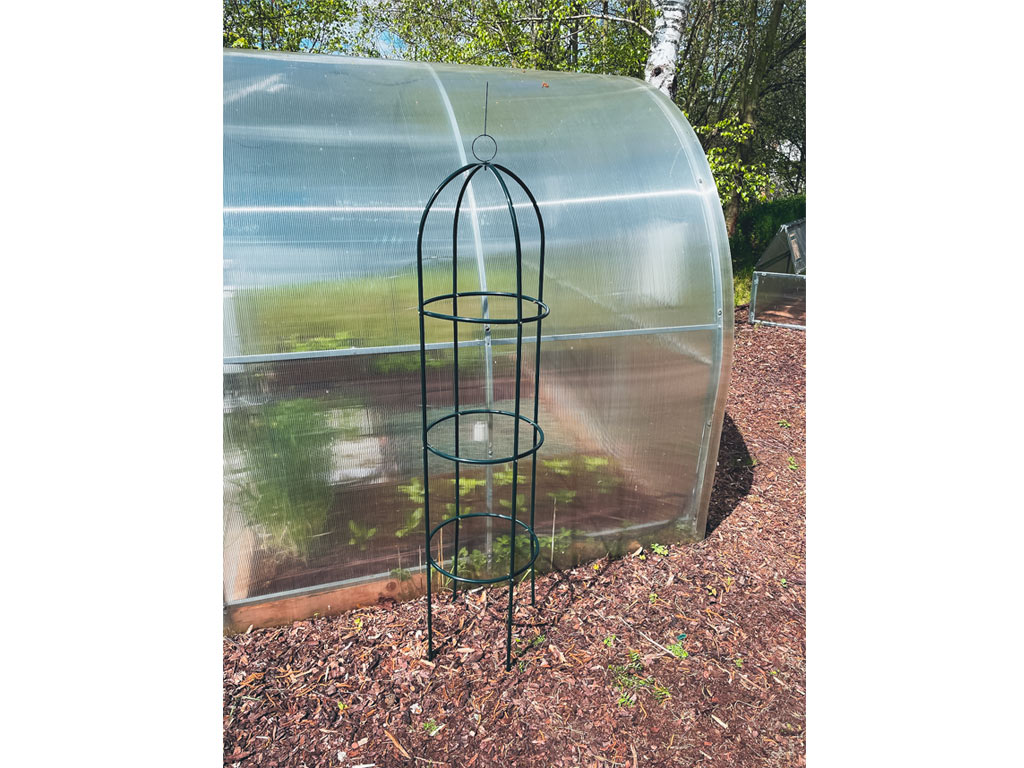 Kovová konstrukce opěry je dostatečně stabilní a pevná, aby unesla i dřevité pnoucí rostliny. Konstrukce se dá snadno demontovat a uskladnit nebo přemístit na jiné stanoviště. Nohy opěry se zatlačí do půdy dostatečně hluboko, aby byla opora stabilní. Konstrukce je ošetřena zeleným nátěrem proti korozi.