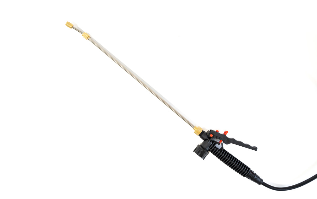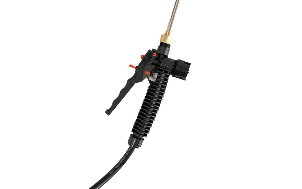 tryska pro aplikaci je individuálně nastavitelná, teleskopický nástavec. Velkou výhodou postřikovače je nízká hmotnost 1 kg.