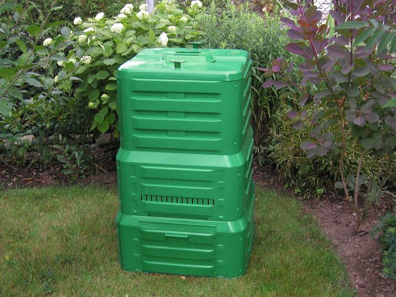 Kompostér nemá dno, protože potřebuje volný styk s půdou a přístup mikroorganismů, červů a žížal.