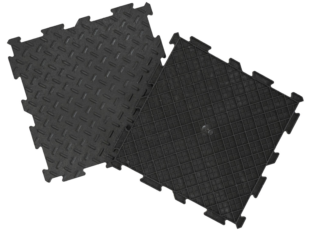 Gumová dlažba Alfa 30 x 30 cm je modulárním podlahovým systémem ideálním do garáže, dílny, pro fitness nebo ostatní cvičební prostory. Pryžový materiál vyniká v tlumení vibrací, hluku a protiskluzových vlastnostech. Tloušťka této dlažby činí 6 mm a díky jejím speciálním zámkům není třeba ukončovat dlažbu rohy či okrajem. Výhody dlaždice Alfa Odolná a pevná dlaždice 6 mm vysoká dlaždice je odolná vůči vysokému zátížení a povětrnostním vlivům UV ochrana Stejný odstín na mnoho let Snadná montáž Dlaždice jednoduše zacvaknete do sebe jako puzzle Snadné čištění a údržba Nečistoty snadno setřete Parametry dlaždice Alfa 30 x 30 cm Rozměry dlaždice 0,6 cm Tloušťka Antracit Barva Čtverec Tvar Puzzle Snadný způsob montáže -50°C až +50°C Teplotní rozsah Kolik dlaždic budu potřebovat? Počet dlaždic vychází z velikosti plochy, kterou chcete dlaždicemi pokrýt, a také jejího tvaru. Dlaždice Alfa prodáváme po kusech.U dlaždice Alfa budete potřeboval průměrně 11 kusů na 1 m2 v případě pokládky na symetrickou plochu (čtvercová nebo obdelníková) bez dalších překážek.V případě nesymetrické plochy doporučujeme objednat rezervní dlaždice navíc.