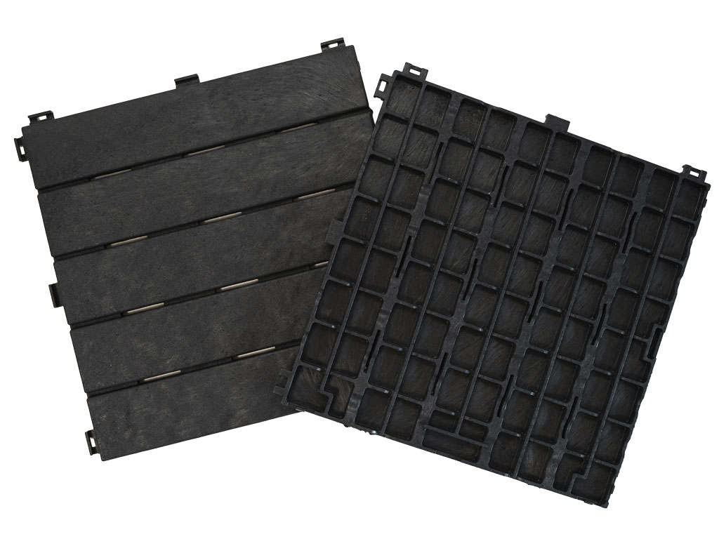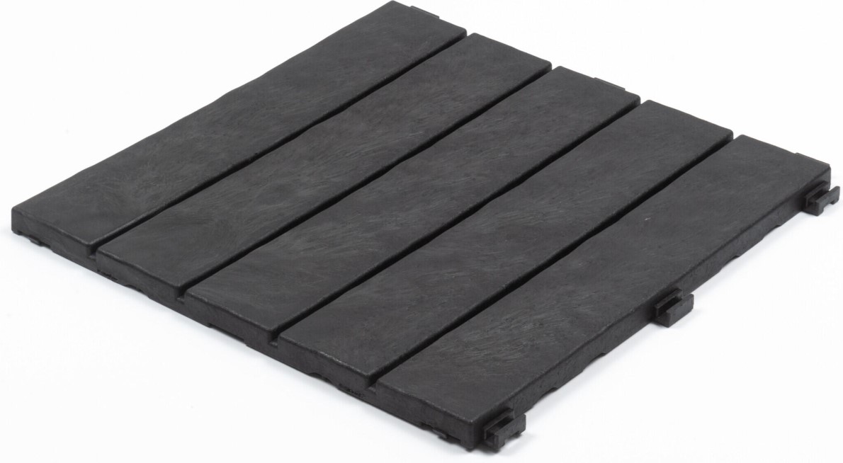 Jak na čištění dlažby? I při silném znečištění, včetně olejových skvrn, lze dlažbu efektivně čistit, a to jak vysokotlakým čističem, tak i běžným mopem. Podívejte se na videoukázku.Balení a způsob doručeníProdukt Vám doručíme standardní balíkovou přepravou a bude zabalen tak, aby při přepravě nedošlo k jeho poškození.Samotný způsob zabalení závisí na počtu objednaných kusů (1 dlaždice váží přibližně 700 gramů) i dalších položkách objednávky. Při větším množství kusů bude dlažba poslána na paletě, paletovou přepravou (orientačně při odběru 100 a více kusů). Chci objednat více kusů, než je aktuálně skladem… Orientační doba naskladnění dalších dlaždic od výrobce je standardně přibližně 14 dní. Pro objednání vyššího počtu kusů nás neváhejte kontaktovat e-mailem nebo telefonicky. Co o dlaždici říkají naši zákazníci Robert Š: "Pokládka a práce s dlaždicemi je velmi jednoduchá. Snadno se seříznou pomocí přímočaré pilky. Na balkóně to vypadá velmi dobře. Co můžu ještě pochválit je, že díky elasticitě zakryjí i povrchové nerovnosti na podkladové ploše."