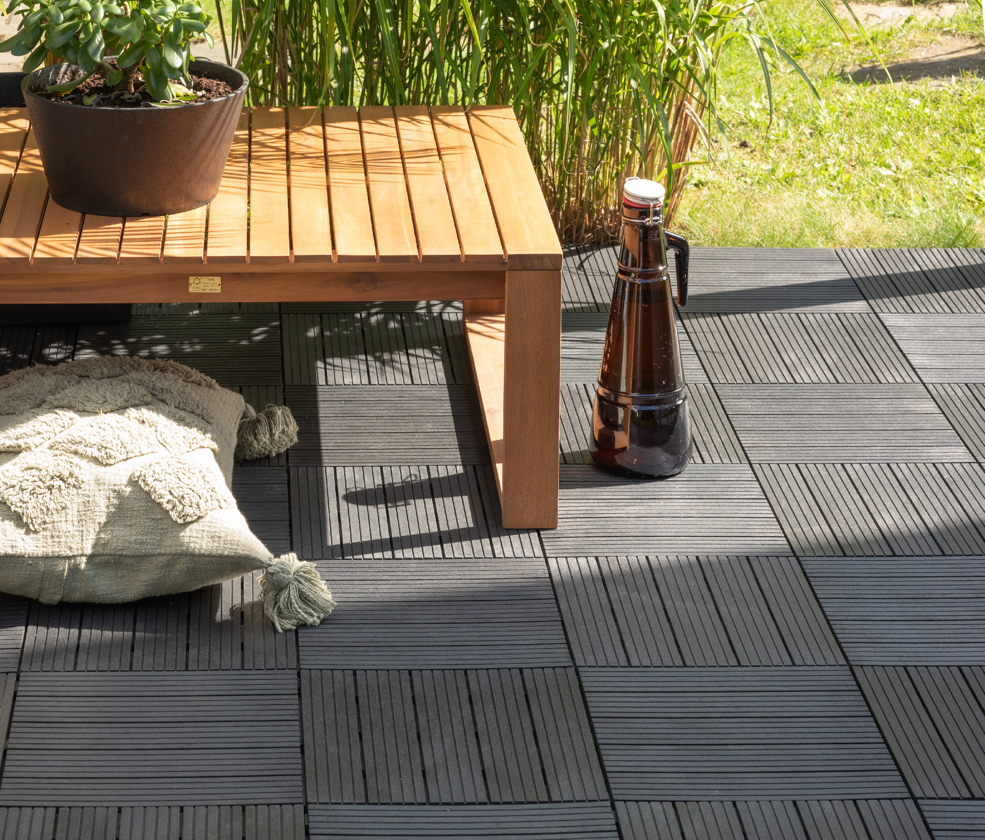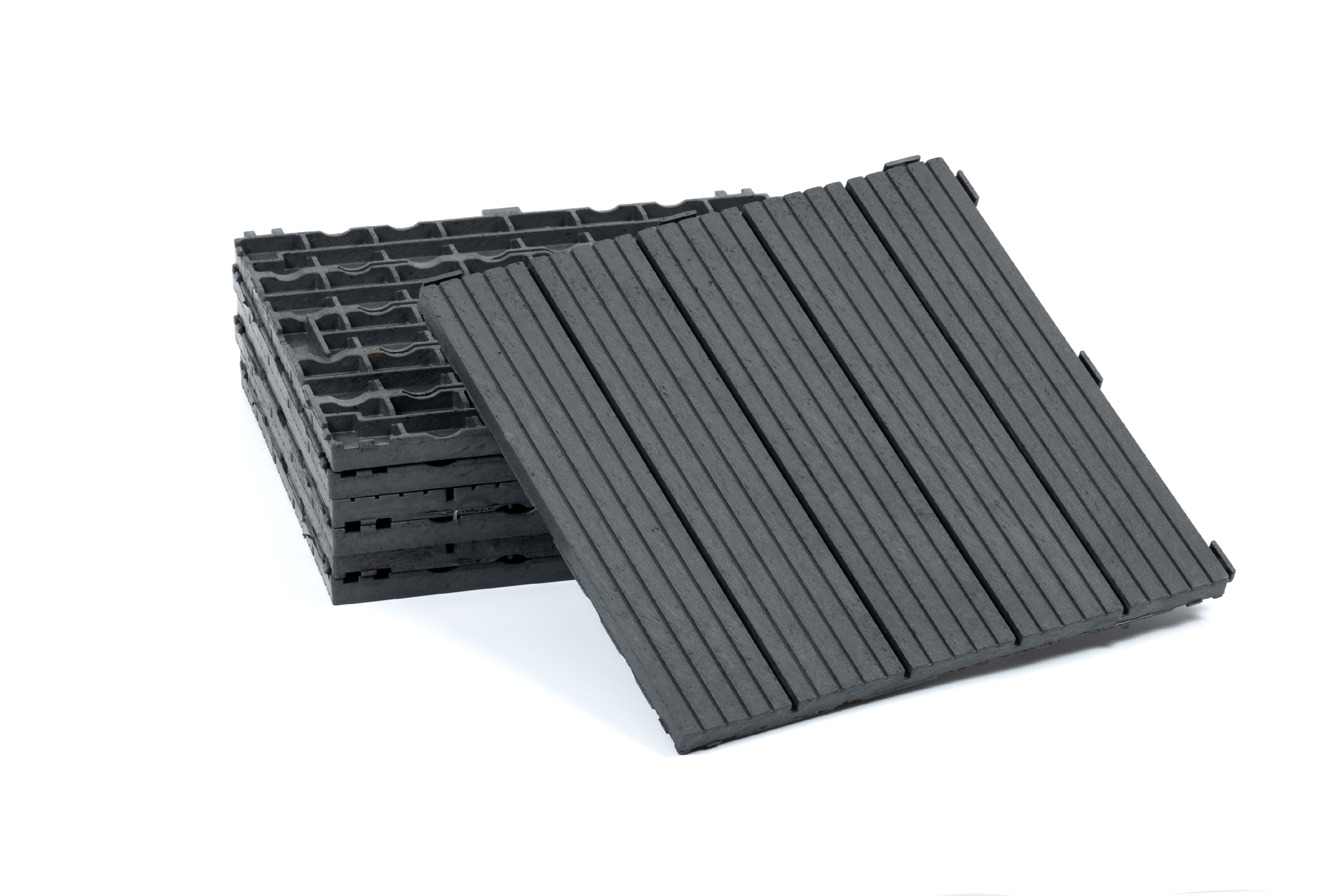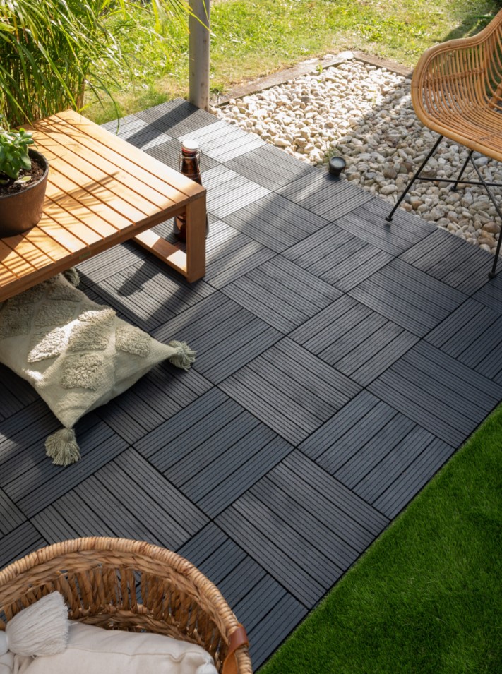 Sháníte novou dlažbu na balkon, terasu nebo zahradu? Dlaždice Cosmopolitan z recyklované pryže jsou tím ideálním řešením. Použitý materiál zaručuje vysokou odolnost a dlouhou životnost. Díky systému Quick-Click je pak položení dlažby rychlé a snadné. Dlažbu lze položit na terase, v altánu či na balkoně. Rovné dosedací plochy zespodu dlaždice neponičí hydroizolaci na pokládaném místě. Mezi izolaci a dlažbu nemusíte vkládat další tkaninu, protože tkanina může způsobovat plísně. Výhody dlaždice Cosmopolitan Moderní a ekologická dlažba Vyrobeno ze 100% recyklované pryže a plastu Odolná a pevná dlaždice 1,5 cm vysoká dlaždice je odolná vůči extrémnímu zátížení a povětrnostním vlivům UV ochrana Stejný odstín na mnoho let Dvě možnosti uspořádání Kombinujte dlaždice vertikálně nebo horizontálně Snadné čištění a údržba Nečistoty snadno setřete Parametry dlaždice Cosmopolitan 30 x 30 cm Rozměry dlaždice 1,5 cm Tloušťka Šedá (grafit) Barva Čtverec Tvar Quick-Click Snadný způsob montáže -50°C až +50°C Teplotní rozsah Kolik dlaždic budu potřebovat? Počet dlaždic vychází z velikosti plochy, kterou chcete dlaždicemi pokrýt, a také jejího tvaru.U dlaždic Extreme budete potřeboval průměrně 11 kusů na 1 m2 v případě pokládky na symetrickou plochu (čtvercová nebo obdelníková) bez dalších překážek.V případě nesymetrické plochy doporučujeme objednat rezervní dlaždice navíc.