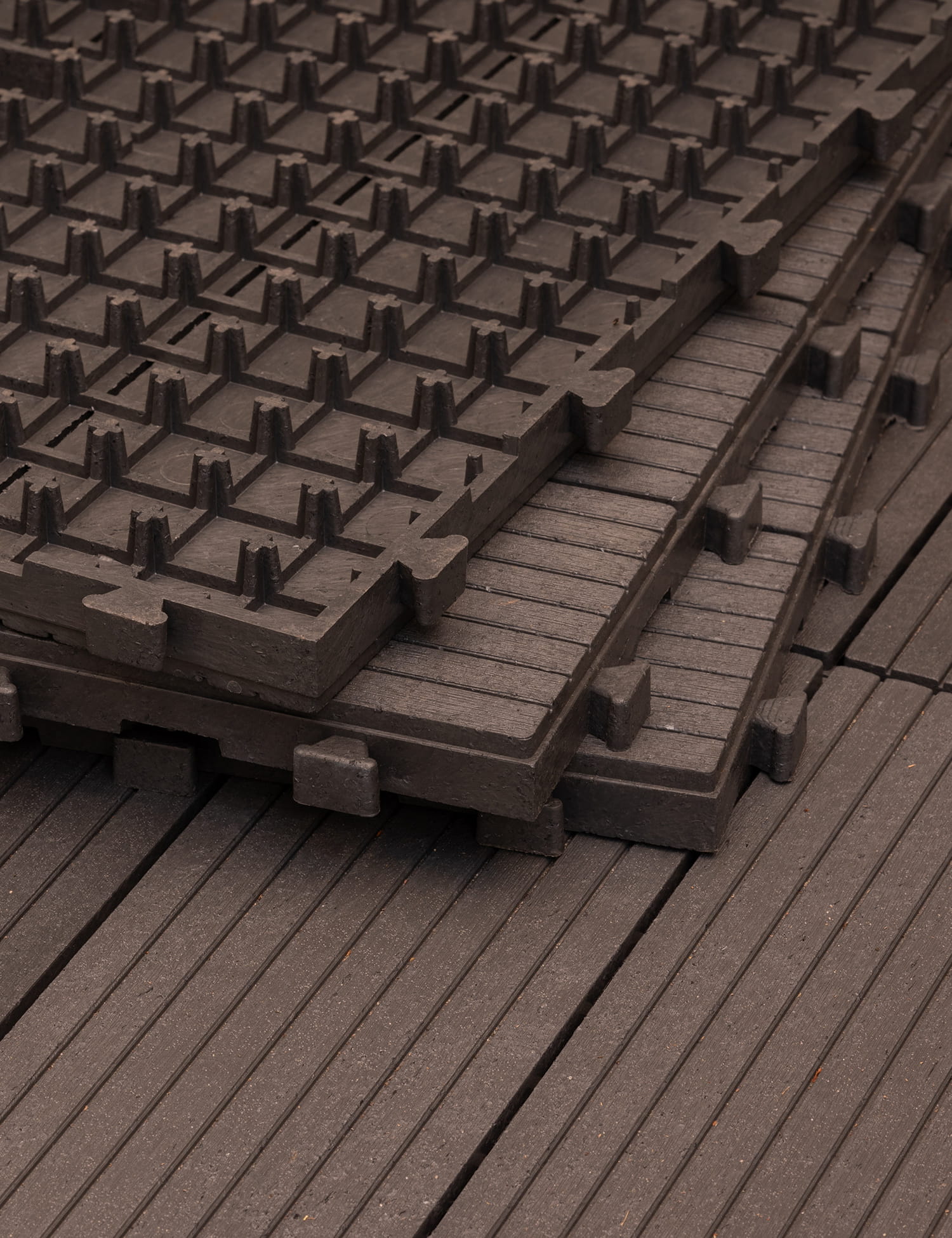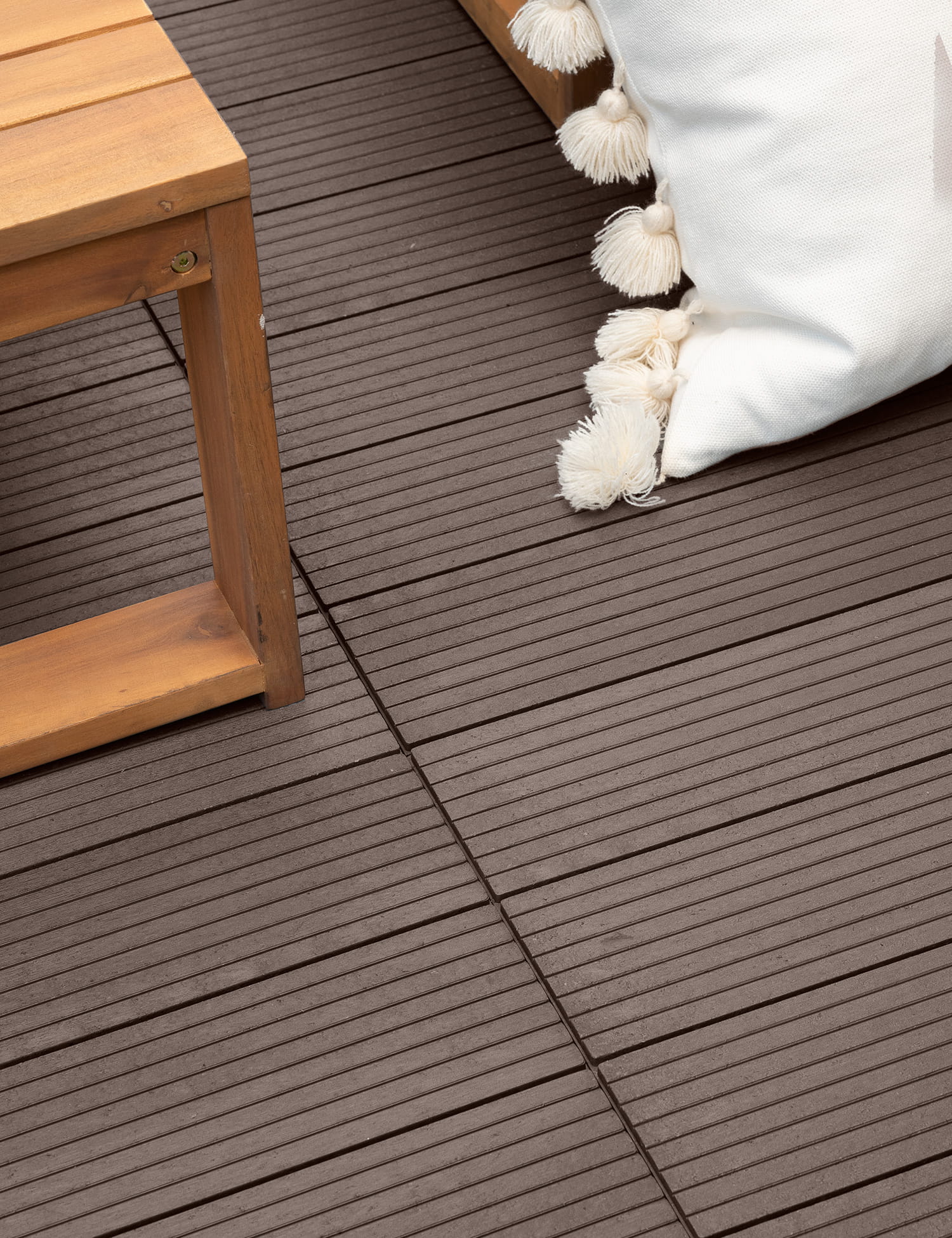 Sháníte novou dlažbu na balkon, terasu nebo zahradu? Dlaždice Cosmopolitan z recyklované pryže jsou tím ideálním řešením. Použitý materiál zaručuje vysokou odolnost a dlouhou životnost. Díky systému Quick-Click je pak položení dlažby rychlé a snadné. Dlažbu lze položit na terase, v altánu či na balkoně. Rovné dosedací plochy zespodu dlaždice neponičí hydroizolaci na pokládaném místě. Mezi izolaci a dlažbu nemusíte vkládat další tkaninu, protože tkanina může způsobovat plísně. Výhody dlaždice Cosmopolitan Moderní a ekologická dlažba Vyrobeno ze 100% recyklované pryže a plastu Ještě pěvnější a odolnější dlaždice Zesílená 2,5 cm vysoká dlaždice je odolná vůči povětrnostním vlivům po mnoho let, ale také vůči nadměrnému zatížení. Dvě možnosti uspořádání Kombinujte dlaždice vertikálně nebo horizontálně UV ochrana Stejný odstín na mnoho let Parametry dlaždice Cosmopolitan 45,5 x 45,5 cm Rozměry dlaždice 2,5 cm Extra tloušťka Hnědá Barva Čtverec Tvar Quick-Click Snadný způsob montáže -50°C až +50°C Teplotní rozsah Kolik dlaždic budu potřebovat? Počet dlaždic vychází z velikosti plochy, kterou chcete dlaždicemi pokrýt, a také jejího tvaru.U dlaždic Extreme budete potřeboval průměrně 5 kusů na 1 m2 v případě pokládky na symetrickou plochu (čtvercová nebo obdelníková) bez dalších překážek.V případě nesymetrické plochy doporučujeme objednat rezervní dlaždice navíc.