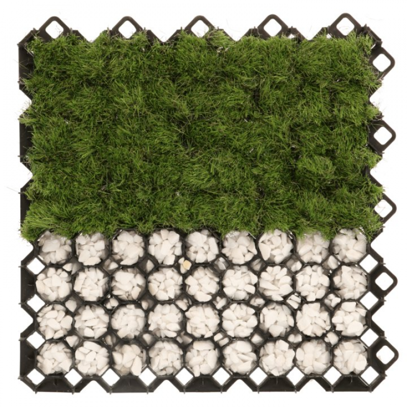 Díky zámkům jsou jednotlivé tvárnice k sobě pevně spojeny a lze je použít i v přechodu do mírných svahů. Pokládku provádějte na vyrovnávací vrstvu, kdy vždy začnete u nejnižšího místa a postupně směřujete k nejvyššímu. Pokud byste i přes dřívější vyrovnání povrchu přeci jen potřebovali nějakou část dorovnat můžete použít hlinitý písek nebo vhodnou směs jemné drtě a písku. Jakmile celou zamýšlenou plochu pokryjete zatravňovací dlažbou, velmi pečlivě si zkontrolujte stabilitu jednotlivých tvárnic. Ty se totiž nesmí hýbat a ani prohýbat. Ignorování tohoto kroku může ve výjimečných případech při větším zatížení zapříčinit prasknutí tvárnic.