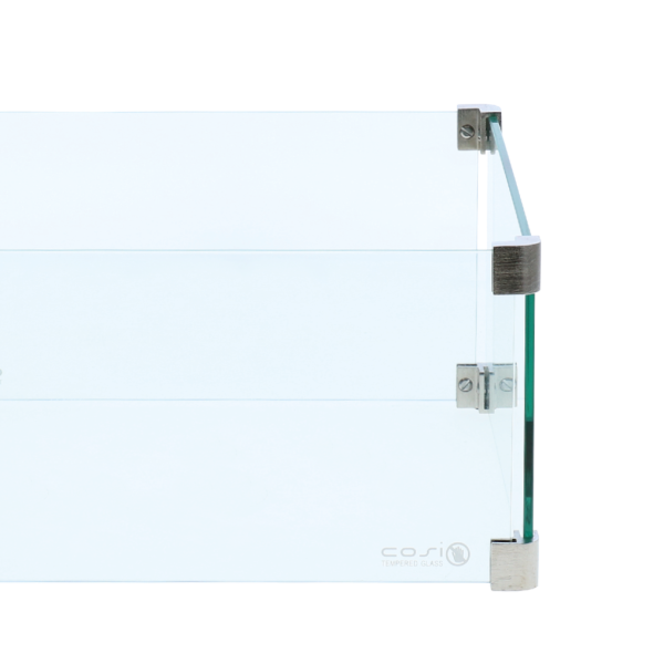 Všechny skleněné sady pro krbové stoly Cosi jsou vyrobeny z tvrzeného skla. To znamená, že sklo bylo zahřáté na cca. 650 stupňů Celsia a poté znovu zchladit. Díky tomuto procesu je sklo až 5krát pevnější než běžné sklo a je méně náchylné k roztržení a rozbití. Použijte tuto sadu k ochraně plamenů před větrem a k ochraně dětských rukou.