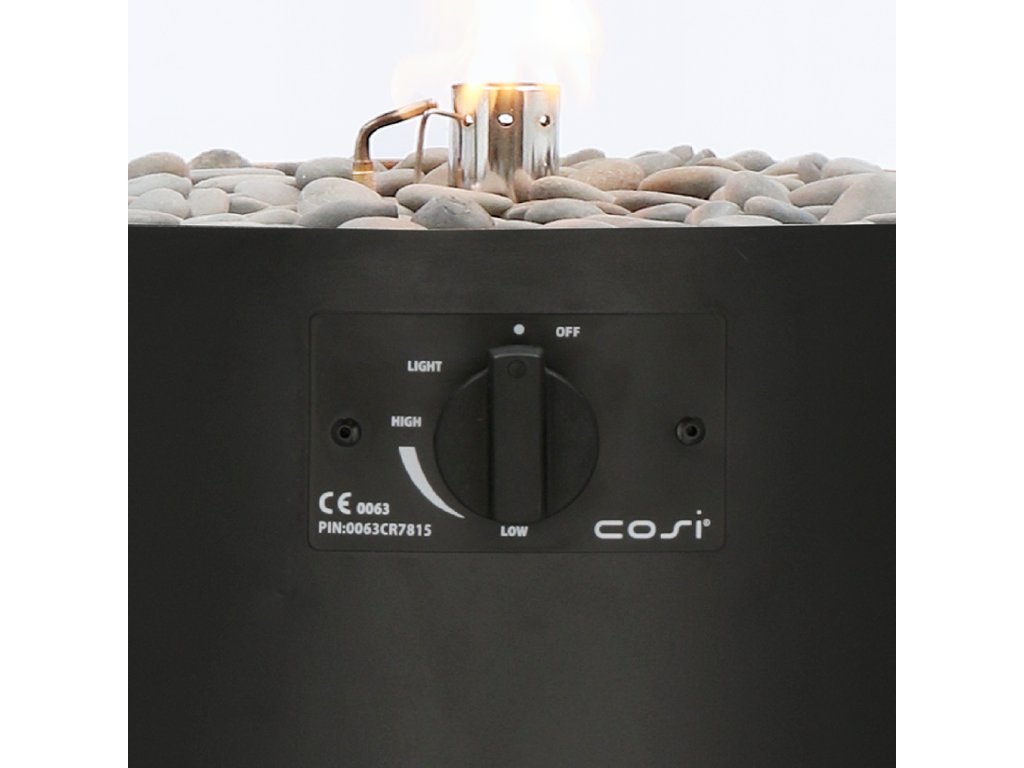 Zahradní lampa COSI Cosiscoop Pillar s plynovým hořákem je dodávána s připojovací hadicí s 30 mbar regulátorem tlaku, s kamínky/oblázky a ochranným sklem. Hořák o výkonu 0,85 kW je vybaven zapínáním s možností regulace na těle lampy. Do rámu lze snadno umístit plynové láhve o výšce 40 cm tj. až 5 kg kompozitní plynové lahve. Doporučujeme ke stolu dokoupit krycí plachtu.