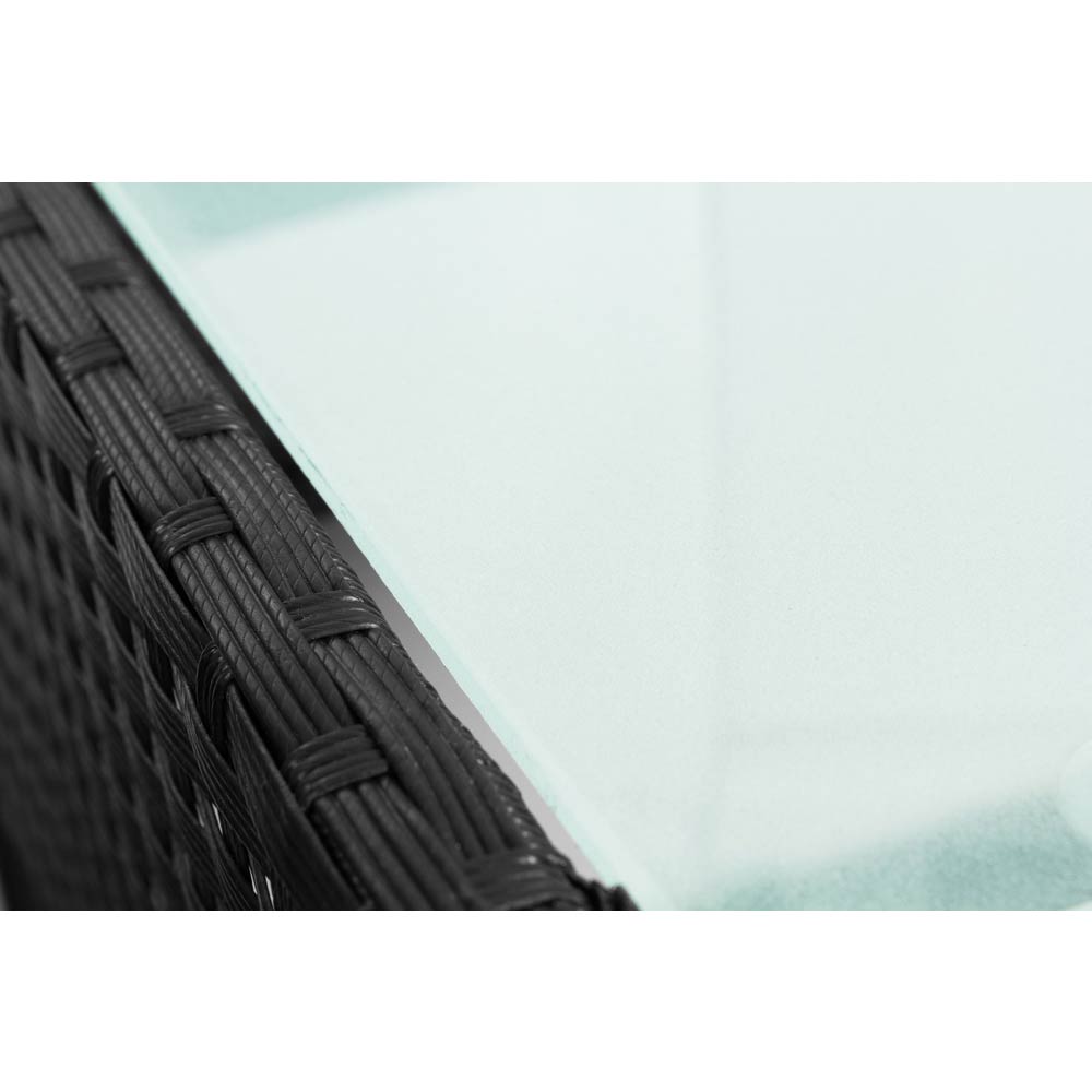Elegantní zahradní set nábytku z umělého ratanu se skládá ze dvou křesel o rozměru 82 x 57 x 59 cm, pohovky v rozměrech 127 x 73 x 78 cm a stolku o rozměrech 48 x 76 x 44 cm. Deska stolku je z tvrzeného skla. Součásti sestavy jsou bílé voděodolné potahy. Celý set je tak vhodný jak na vnitřní tak venkovní použití.