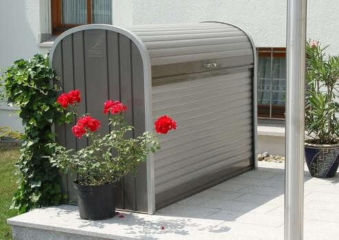 Box je absolutně odolný proti dešti, s integrovanou ventilací, uzamykatelný. Dokoupením držáku jízdních kol v nabídce volitelného příslušenství získáte bezpečnou garáž pro svá kola.
