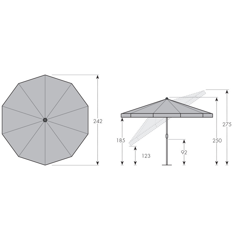 Slunečník Doppler Nassau 3,5 m je ideálním společníkem na balkón či terasu. Rám slunečníku je vyroben z oceli v antracitové barvě s epoxidovou povrchovou úpravou. Komfortní funkce naklápění umožňuje naklopení střechy. Potah je vyroben s kvalitním nepromokavým polyesterovým potahem beze švů v provedení, které je odolný povětrnostním vlivům s dobrou UV ochranou 50+ . Vhodný je také pro gastro ztařízení.