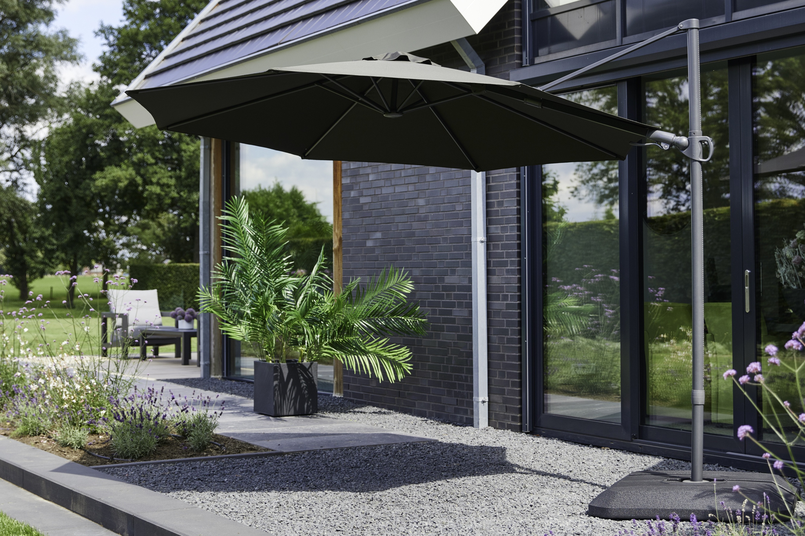 Slunečníky s boční nohou se skvěle hodí pro zahradní sety a jídelní stoly, které nemají v desce stolu otvor pro protažení slunečníku. Dají se snadno přenášet a pokryjí celou cestu slunečního putování.