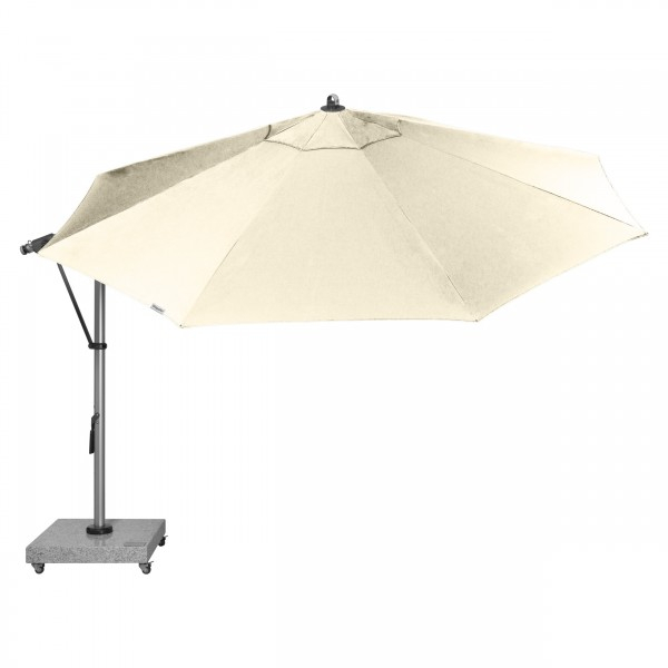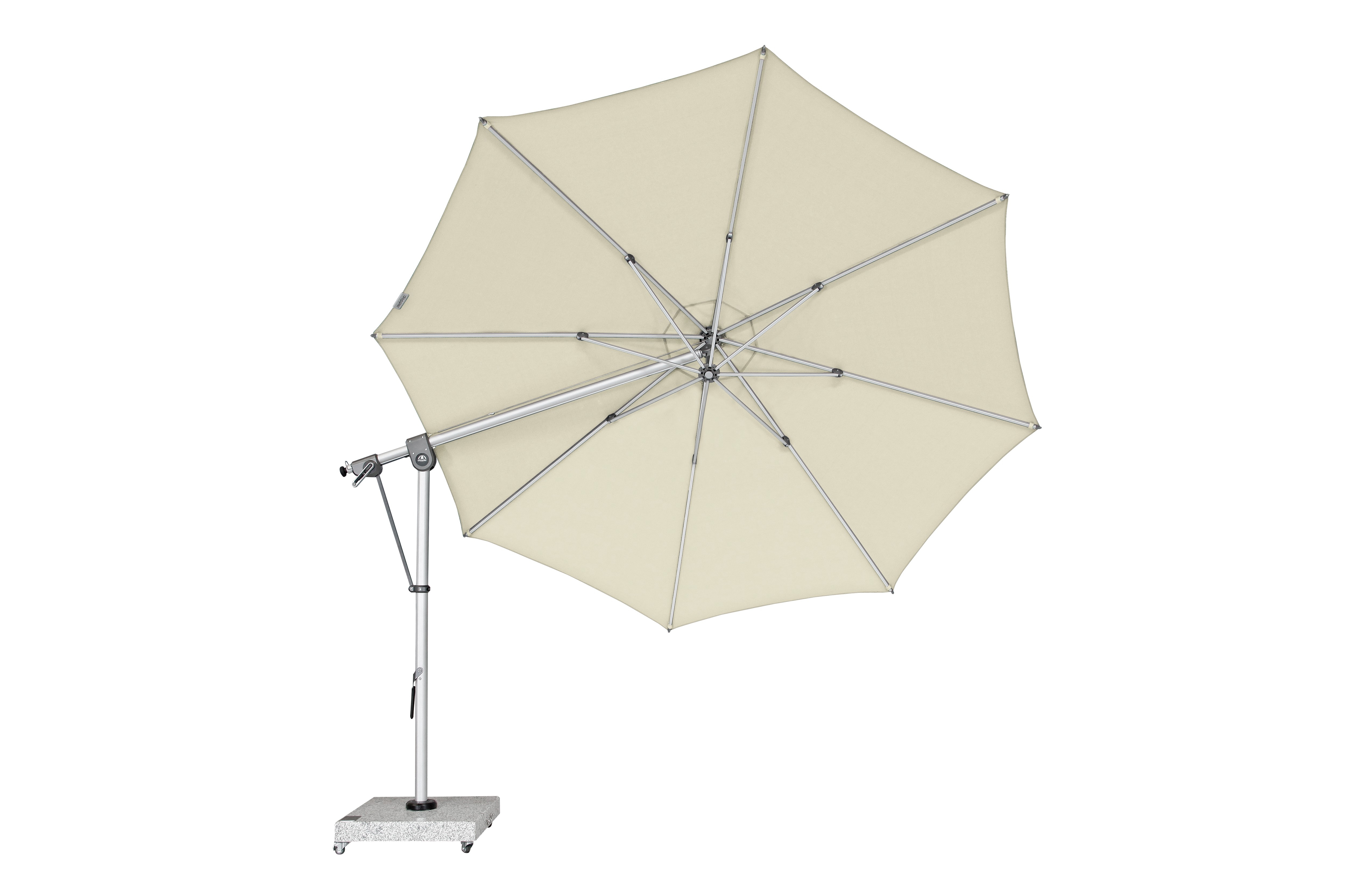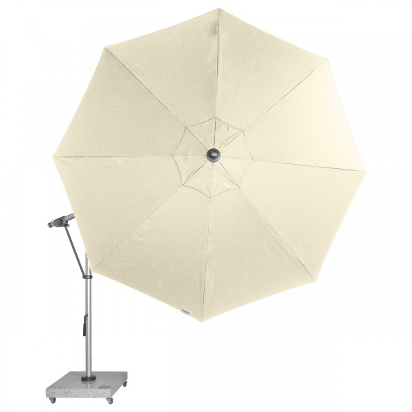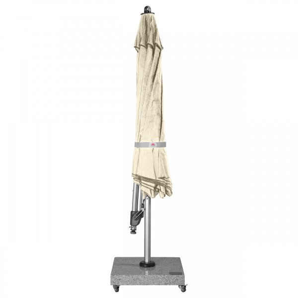 Kvalitní multifunkční výkyvný slunečník s boční tyčí Doppler Expert 350P lze optimálně přizpůsobit poloze slunce díky své schopnosti otáčení o 360° a oboustrannému bočnímu naklápění střechy. Konstrukce je vyrobena z vysoce jakostního hliníku a všechny díly jsou šroubované. Potah je vyroben z polyesterové tkaniny odpuzující vodu s dobrou UV ochranou 80+. Potah je snímatelný, s možností ručního praní. Vodoodpudivý potah je s impregnací proti špíně a plísni včetně ochranného obalu, který chrání slunečník před nepřízní počasí. Instalace na žulový sokl nebo zemní kotvu.