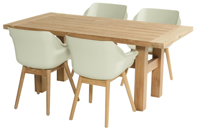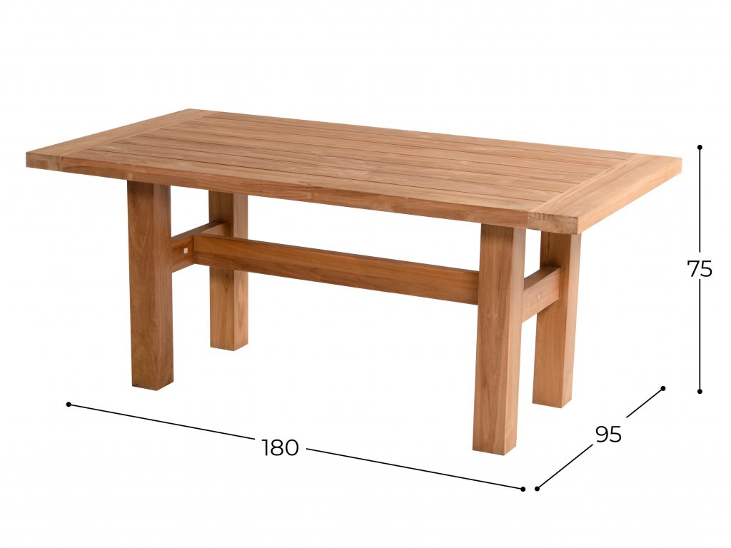 Stůl je vyroben z teakového dřeva a je neuvěřitelně bytelný a odolný. Teak má lehce našedlou barvou, která je pro něj přirozená a v průběhu času ještě lehce zesvětlá. Pokud chcete udržet stejnou barvu dřeva, můžete stůl ošetřit nátěrem. Tento materiály je také velmi odolný vůči různým povětrnostním vlivům a nepřízni počasí. Díky tomu může stůl zůstat venku po celý rok.