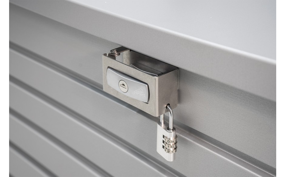 Se základním vybavením vaše možnosti nekončí. V případě, že neočekáváte žádné zásilky, sponu s visacím zámkem můžete z boxu odstranit a používat ho jako úložní zahradní box. Pro tento případ v nabídce volitelného příslušenství najdete další praktické pomocníky jako např. síť na víko, nebo závěsný koš. Díky tomu si box můžete ještě více uzpůsobit vlastním představám a mnohostrannému využití.