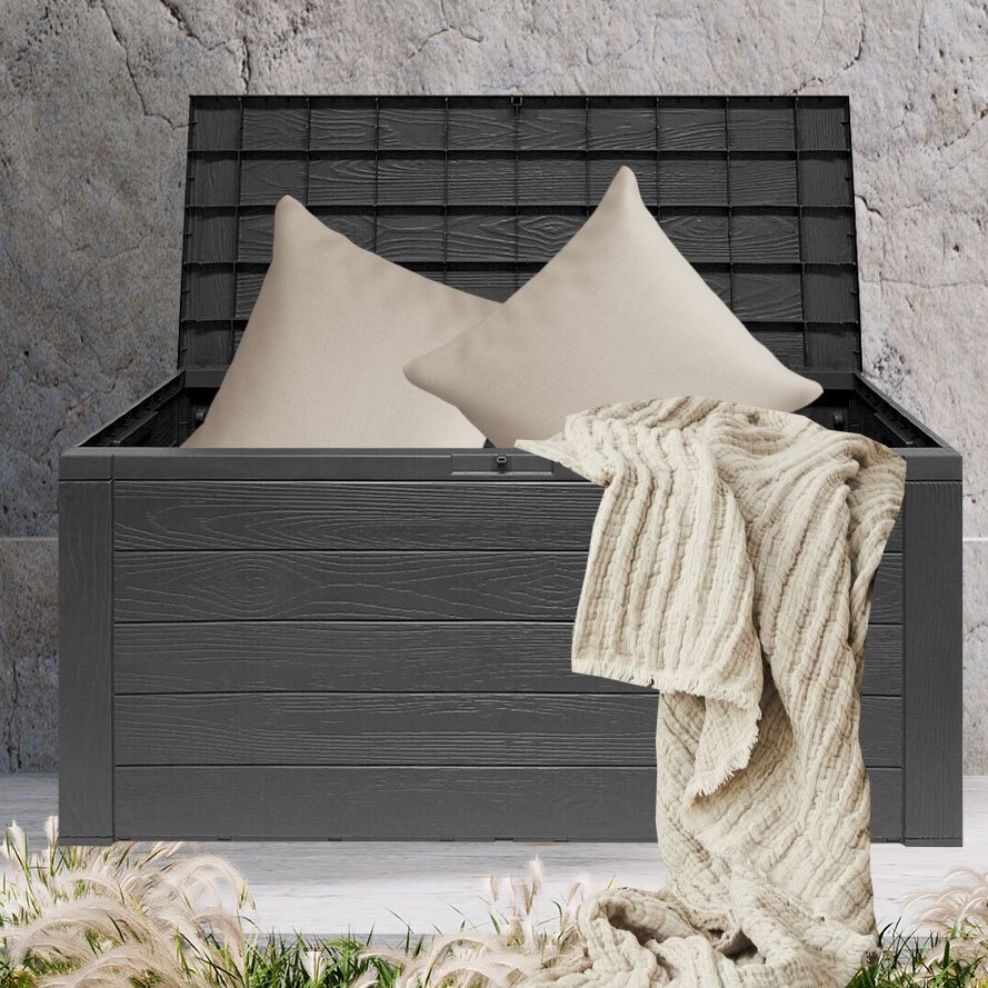 Zahradní box WOODEBOX s objemem 280 litrů vám pomůže udržet pořádek a zároveň ochrání uložené předměty před nepřízní počasí a škůdci. Design, který imituje dřevěná prkna, skvěle zapadne do venkovního prostoru.